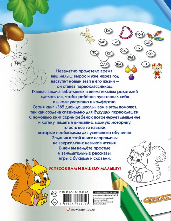 Серия книг "365 дней до школы" создана специально для будущих первоклашек. С помощью книг серии ребёнок потренирует мышление и логику, память и внимание, мелкую моторику, то есть все те навыки, которые необходимы для успешного обучения.