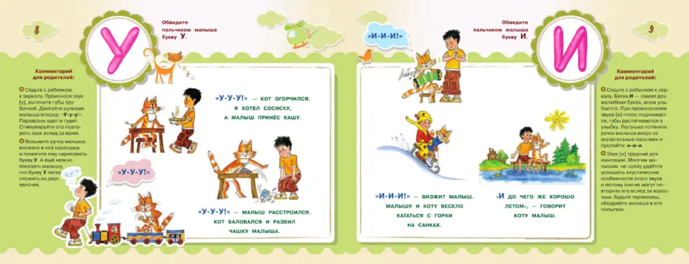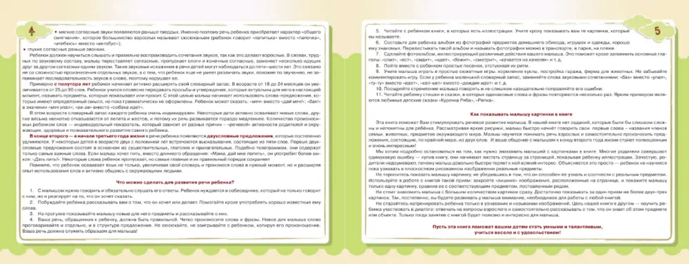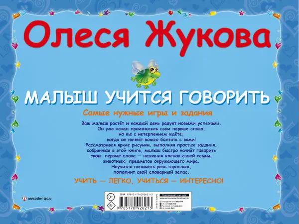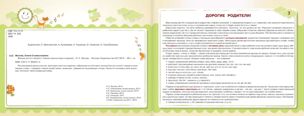 Рассматривая яркие рисунки, выполняя простые задания, собранные в этой книге, малыш быстро начнёт говорить свои первые слова — названия членов своей семьи, животных, предметов окружающего мира. Научится понимать речь взрослых, пополнит свой словарный запас.