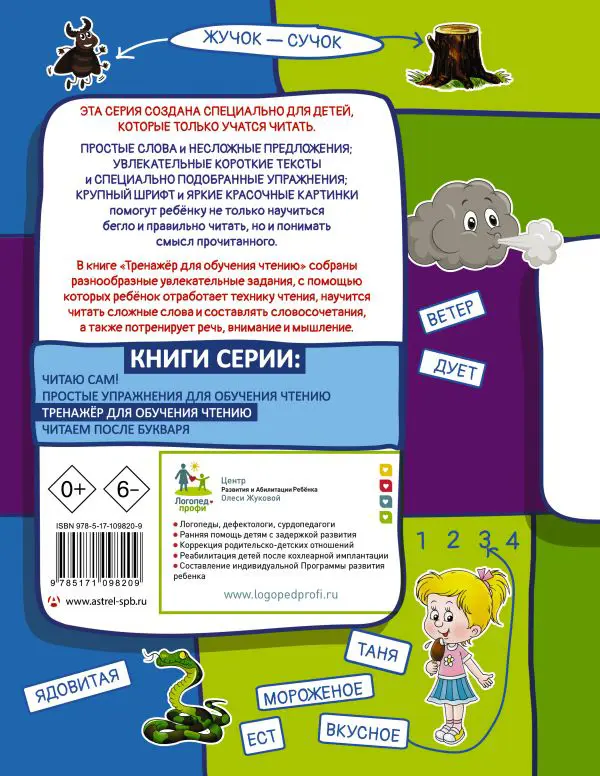 В книге "Тренажер для обучения чтению" собраны разнообразные увлекательные задания, с помощью которых ребенок отработает технику чтения, научится читать сложные слова и составлять словосочетания, а также потренирует речь, внимание и мышление.