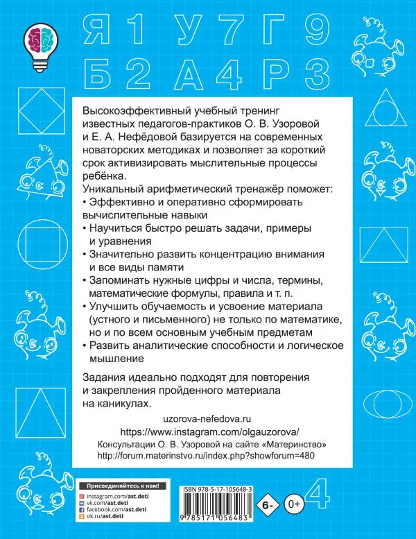 О чем эта книга В пособие известных педагогов-практиков О. В. Узоровой и Е. А. Нефёдовой предложены основные виды текстовых задач для 2-го класса. Кому эта книга будет интересна Для заботливых родителей и старательных учеников. Каковы особенности этой книги • Умение решать текстовые задачи — один из основных показателей уровня математической подготовки школьника. • Высокоэффективный учебный тренинг базируется на современных методиках. • Уникальный тренажёр поможет второклассникам быстро научиться решать задачи по математике. • Содержит все виды задач с объяснениями и все виды чертежей, кратких записей и схем. • Учебное пособие можно использовать на уроках математики в классе и при самостоятельной работе дома.