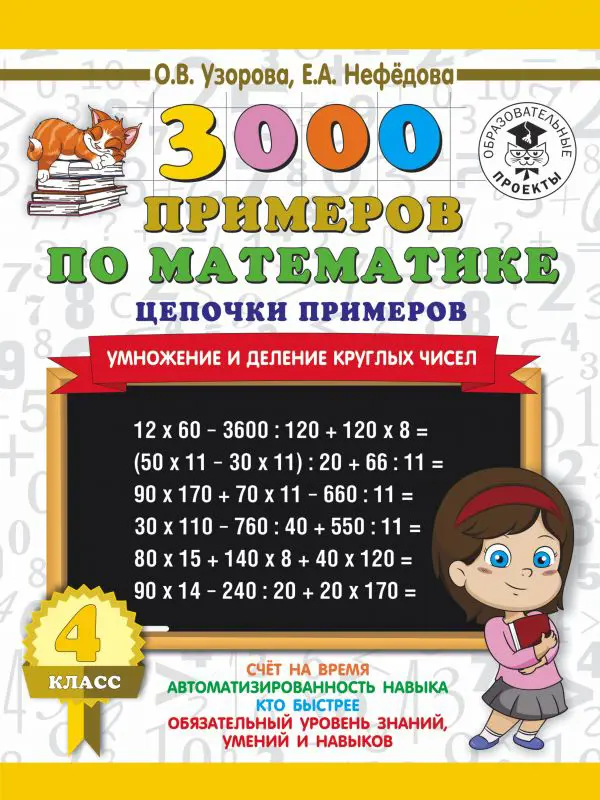 Математика. 4 класс. 3000 примеров по математике. Цепочки примеров. Умножение и деление круглых чисел