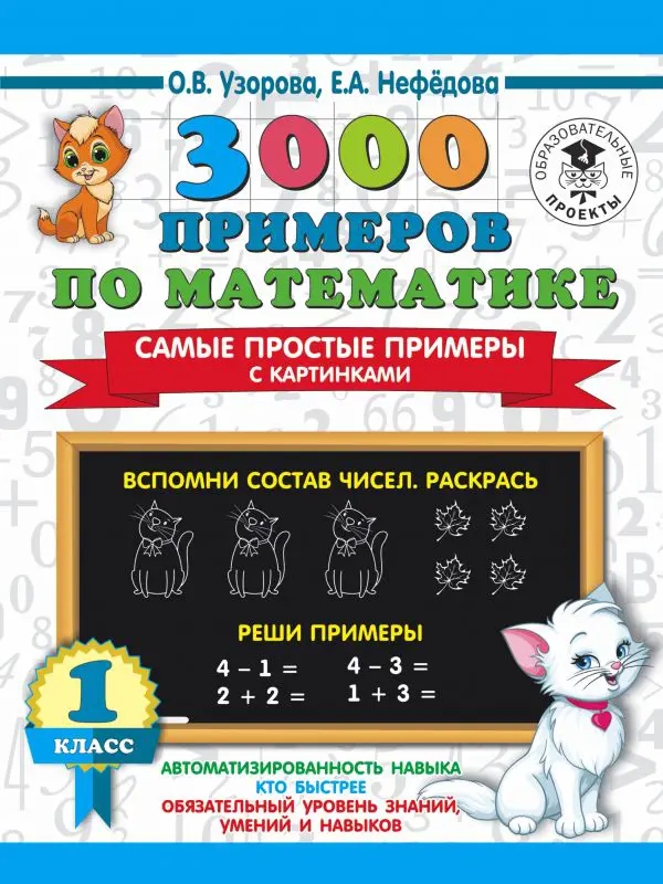 Математика. 1 класс. 3000 примеров по математике. Самые простые примеры с картинками