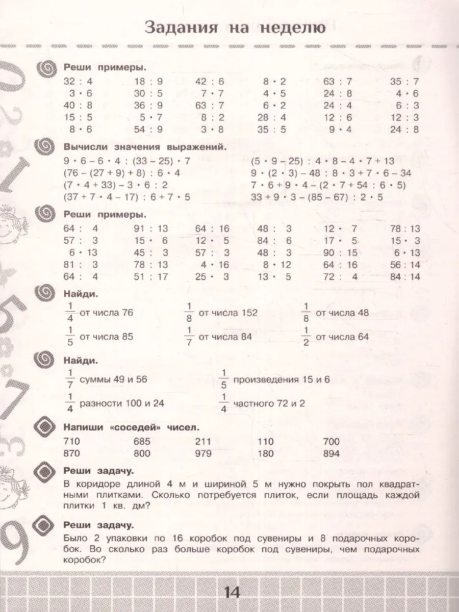 Если ребёнок в течение недели будет ежедневно тратить хотя бы 15 минут в день на выполнение задания, то он успешно повторит пройденный за год материал и легко начнёт учебные занятие в сентябре.