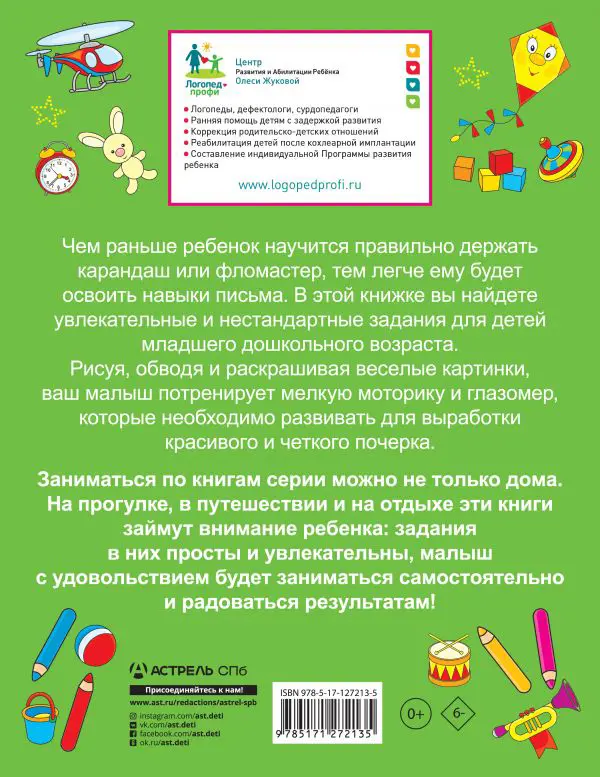 В этой книжке вы найдете увлекательные и нестандартные задания для детей младшего дошкольного возраста. Обводя, раскрашивая и штрихуя веселые картинки, ваш малыш потренирует мелкую моторику и глазомер, которые необходимо развивать для выработки красивого и четкого почерка.
