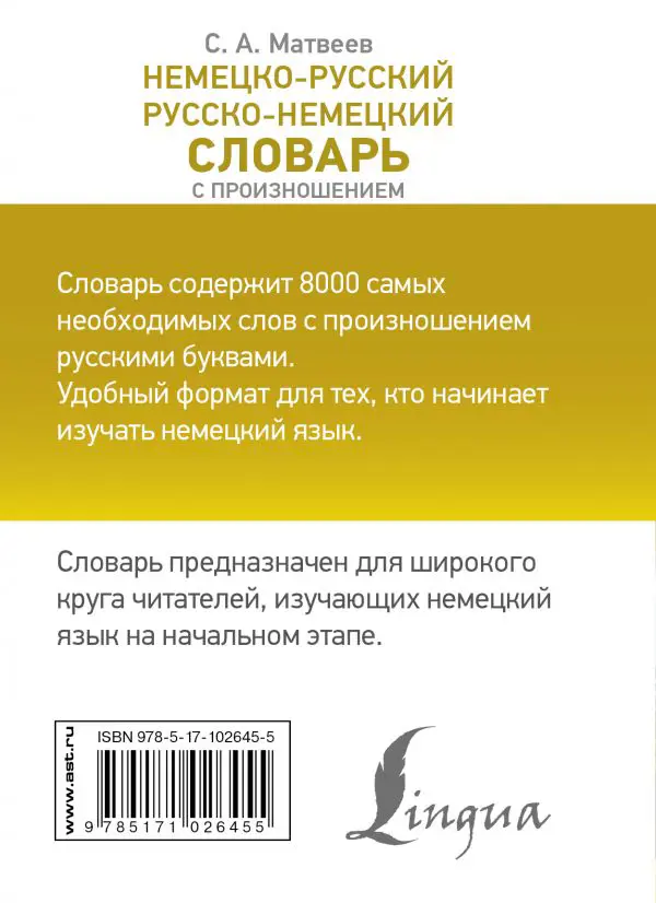 Известный автор С. А. Матвеев предлагает немецко-русский и русско-немецкий словарь для начинающих учить немецкий язык.