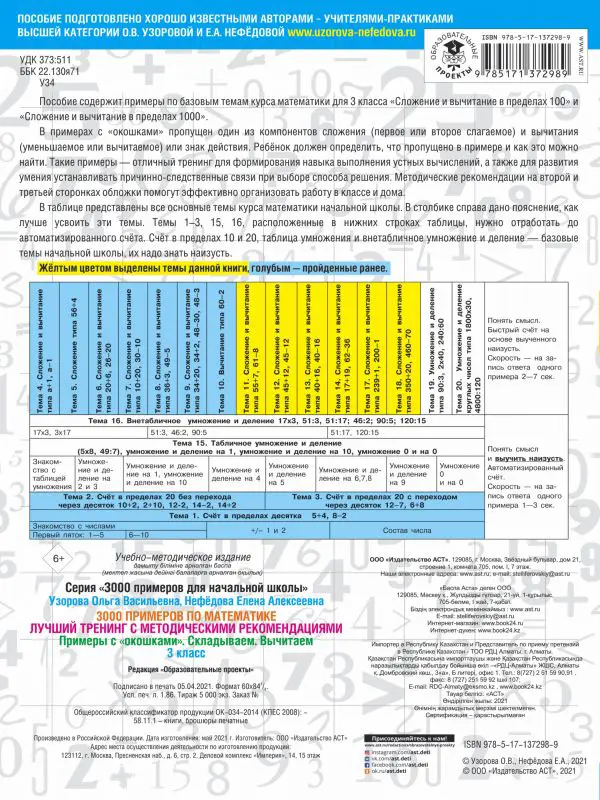 Математика. 3 класс. 3000 примеров по математике. Лучший тренинг. Складываем. Вычитаем. Примеры с окошками. С метод. рекомендациями