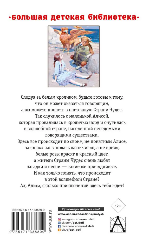 Сказки Льюиса Кэррола о приключениях Алисы в Стране Чудес по сей день пользуются большой популярностью у читателей разных возрастов. Последовав за Белым Кро-ликом, маленькая Алиса попадает в мир, населенный говорящими и не очень-то дружелюбными существами. Каждый спешит рассказать девочке свою удивительную историю, а Алиса пытается разобраться, что же в этой Стране Чудес все-таки происходит… В книгу вошли две сказки: "Алиса в Стране Чудес" и "Алиса в Зазеркалье".