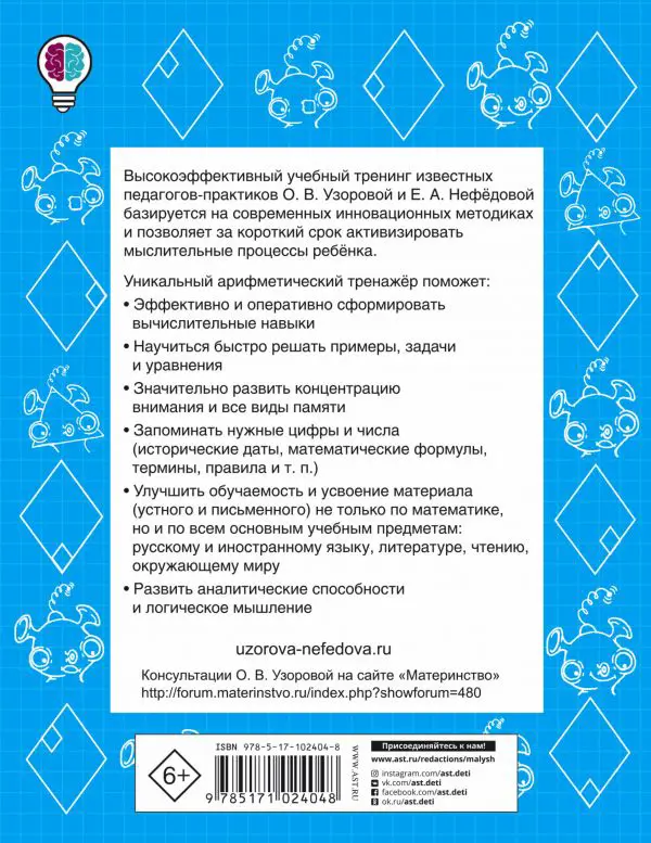Учебное пособие известных педагогов-практиков О. В. Узоровой и Е. А. Нефёдовой "Быстро повторим — быстро проверим. Математика. 2 класс" позволит ученику проверить и закрепить математические знания и умения. Увлекательные и полезные упражнения на полях книги помогут развить логическое мышление, внимание, память. Пособие можно использовать для работы дома и в классе по всем федеральным программам начальной школы.