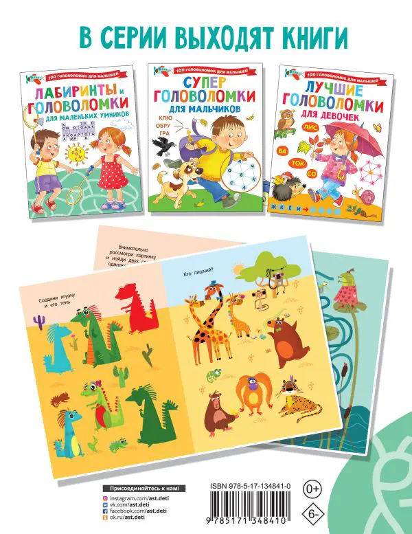 О чем эта книга Новая увлекательная книжка в серии «100 головоломок для малышей» — путешествие в мир лабиринтов и логических задачек. Кому эта книга будет интересна Это книга интеллектуальных игр для умников, умничек и настоящих фантазеров. Каковы особенности этой книги • Прекрасный подарок дошкольнику для развития наблюдательности и смекалки. • С развивающей книжкой ребёнок совершит увлекательные путешествия по таинственным лабиринтам. • Простые и интересные задания тренируют мелкую моторику, развивают образное мышление и воображение, сообразительность и логику. • Найти выход из лабиринта помогут внимательность и упорство. • Книжка помогает раскрыть творческий потенциал ребенка, дарит ему множество положительных эмоций. Разгадывание головоломок превратит занятия в веселую и увлекательную игру, ваш ребенок будет гордиться собой!