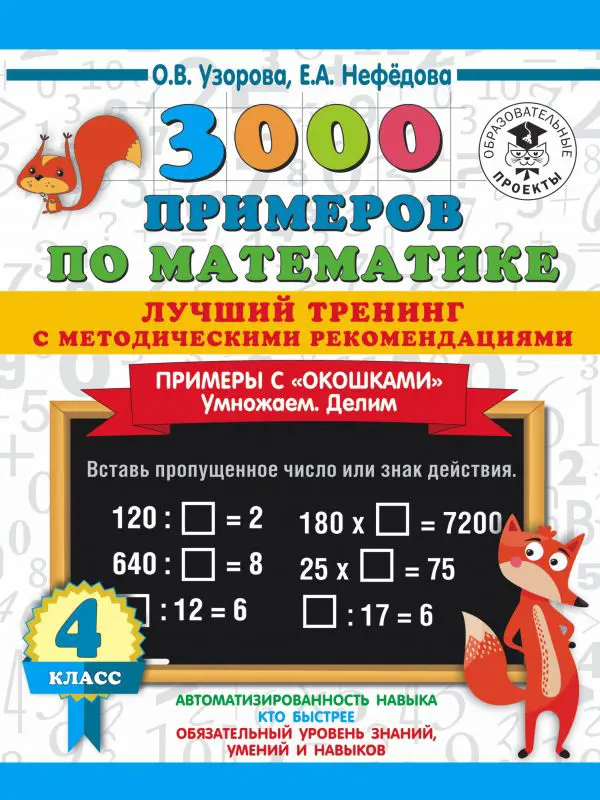 Математика. 4 класс. 3000 примеров по математике. Лучший тренинг. Умножаем. Делим. Примеры с "окошками". С метод. рекомендациями