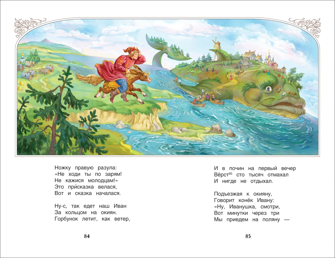 Сказка «Конек-горбунок» написана П. Ершовым ещё в студенческие годы, в возрасте 19 лет. Спустя почти 200 лет «Конек-горбунок» остается самой известной и любимой сказкой, уступая в популярности, пожалуй, только сказкам А. С. Пушкина. Иллюстрации А. Лебедева.