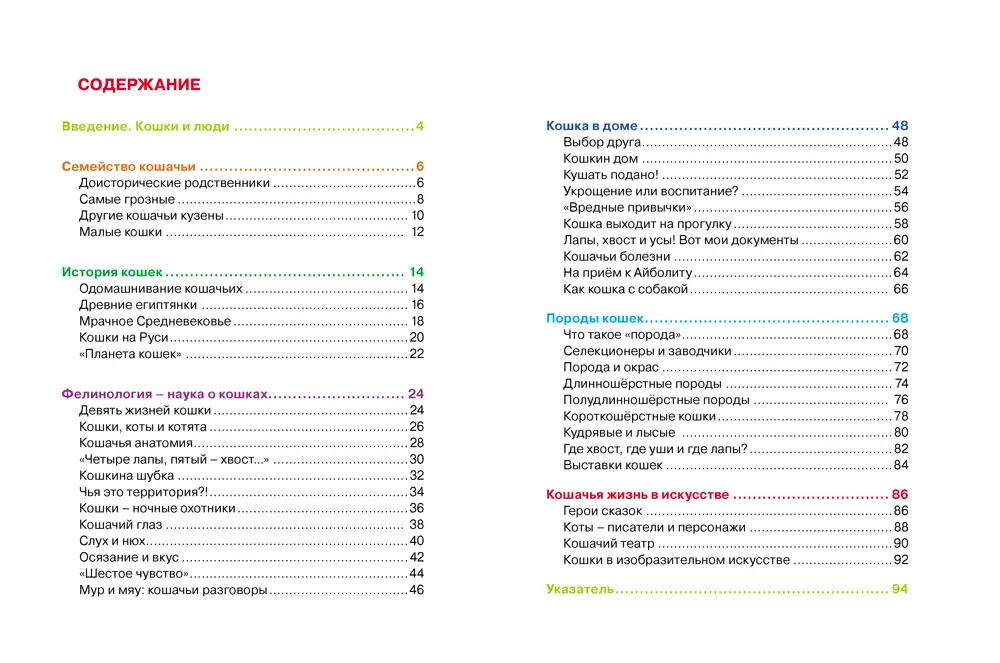Кошка – одно из самых распространённых в мире домашних животных. Вот уже на протяжении нескольких тысяч лет она живёт бок о бок с человеком. Цель этой энциклопедии - помочь людям лучше понять кошек и научиться общению с ними. Читатель узнает историю одомашнивания кошки, как менялось отношение к этим животным в разные эпохи, а также о различных кошачьих породах. Здесь даны практические советы, как лучше устроить жизнь кошки в человеческой семье. Эта книга научит читателей «говорить с котом», поможет людям понять кошек.