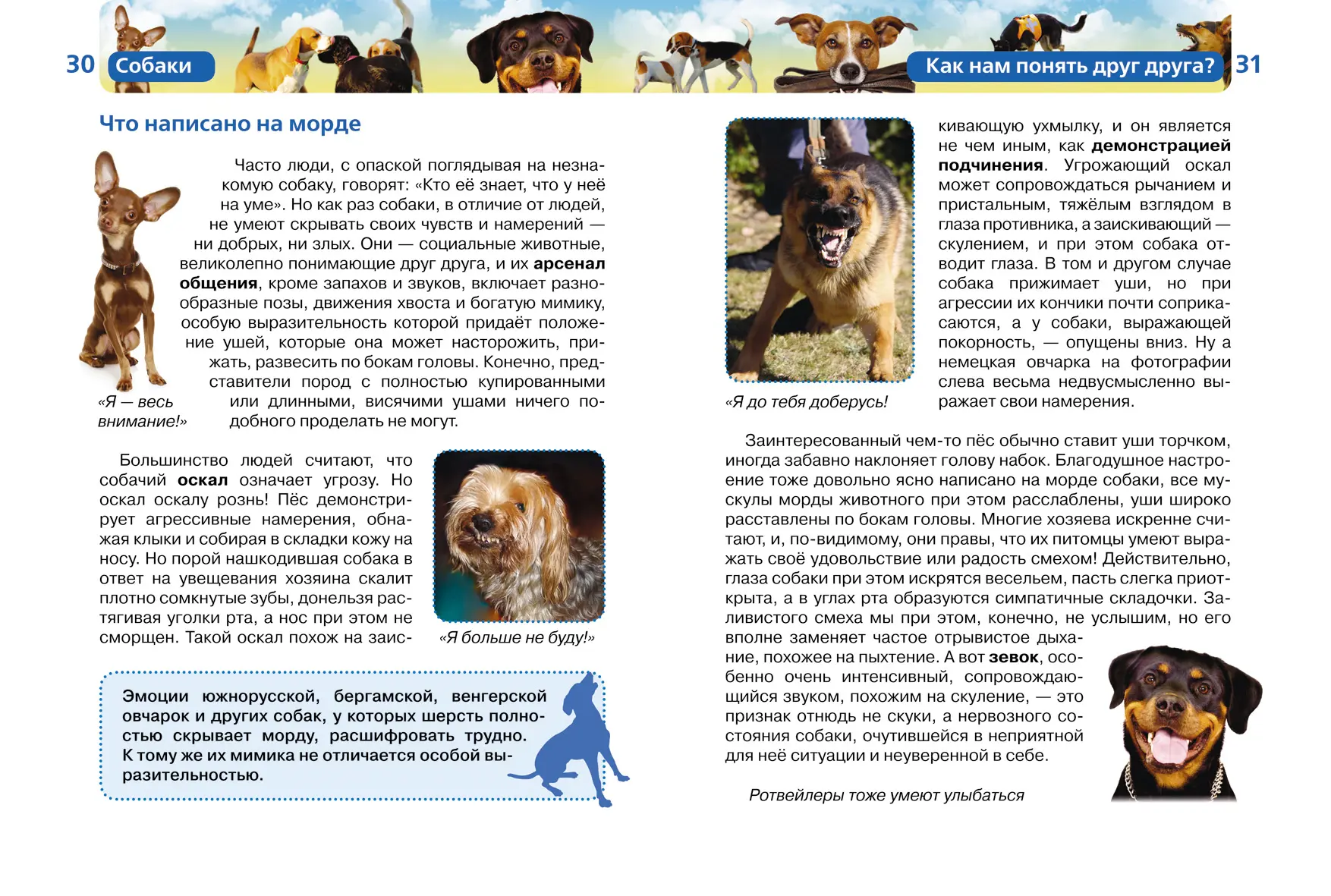Собака - одно из наиболее популярных и распространенных животных. На протяжении нескольких тысяч лет она живет бок о бок с человеком. Собаки, самые преданные существа, прочно вошли в наше общество и заслужили звание "лучшего друга человека". В благодарность за преданность и безупречную службу во многим странам им установлены памятники. Цель этой энциклопедии - помочь людям лучше понять собак и научиться общению с ними. Читатель узнает историю одомашнивания собак, как менялось отношение к этим животным в разные эпохи. В книге также содержится интересная информация о различных породах собак.