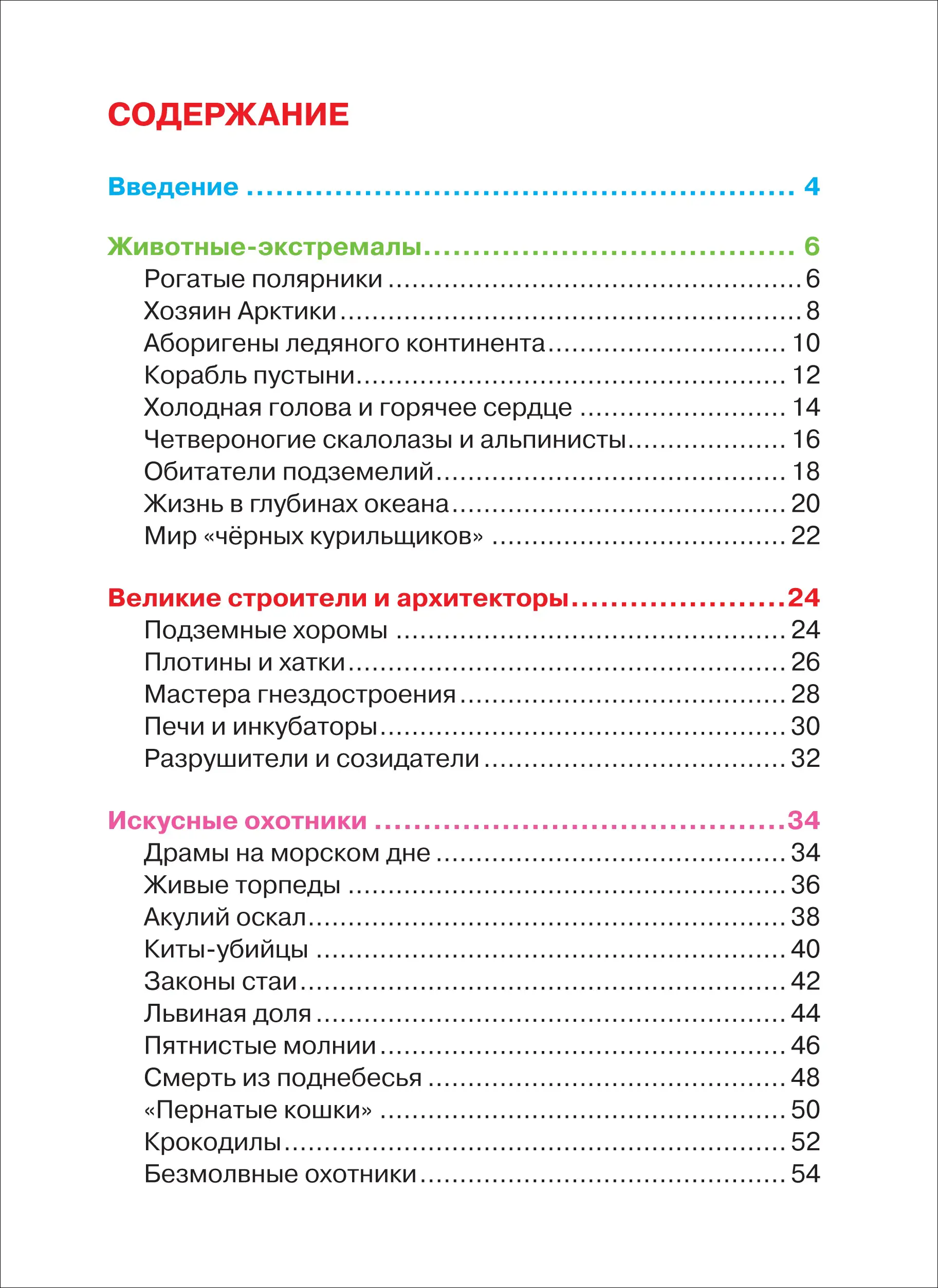 Книга рассказывает о самых разных видах животных, обитающих на Земле. Юные читатели узнают любопытные факты из жизни млекопитающих, птиц, насекомых, рептилий, амфибий, морских обитателей планеты, изложенные увлекательным языком. Крошечные и огромные, хищные и травоядные, опасные и безобидные, дикие и домашние - животные такие разные, но именно поэтому они и интересны нам.