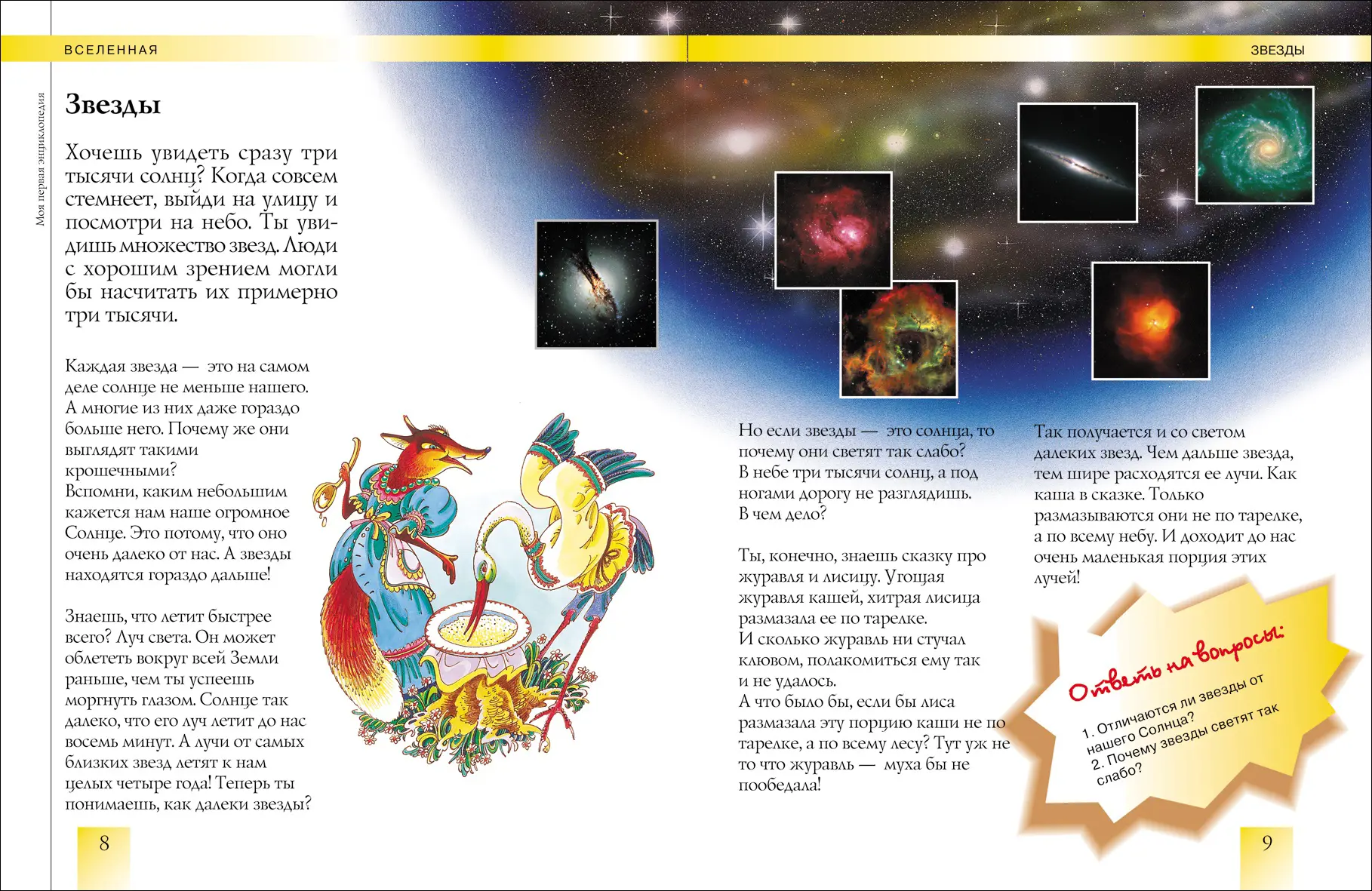 Книга с чудесными иллюстрациями рассказывает об окружающем мире, о том, как устроена Вселенная и наша планета, какие животные и растения есть на Земле, а также о том, как работают привычные нам вещи. Издание рассчитано на детей от пяти лет и содержит вопросы и задания для активного обучения.