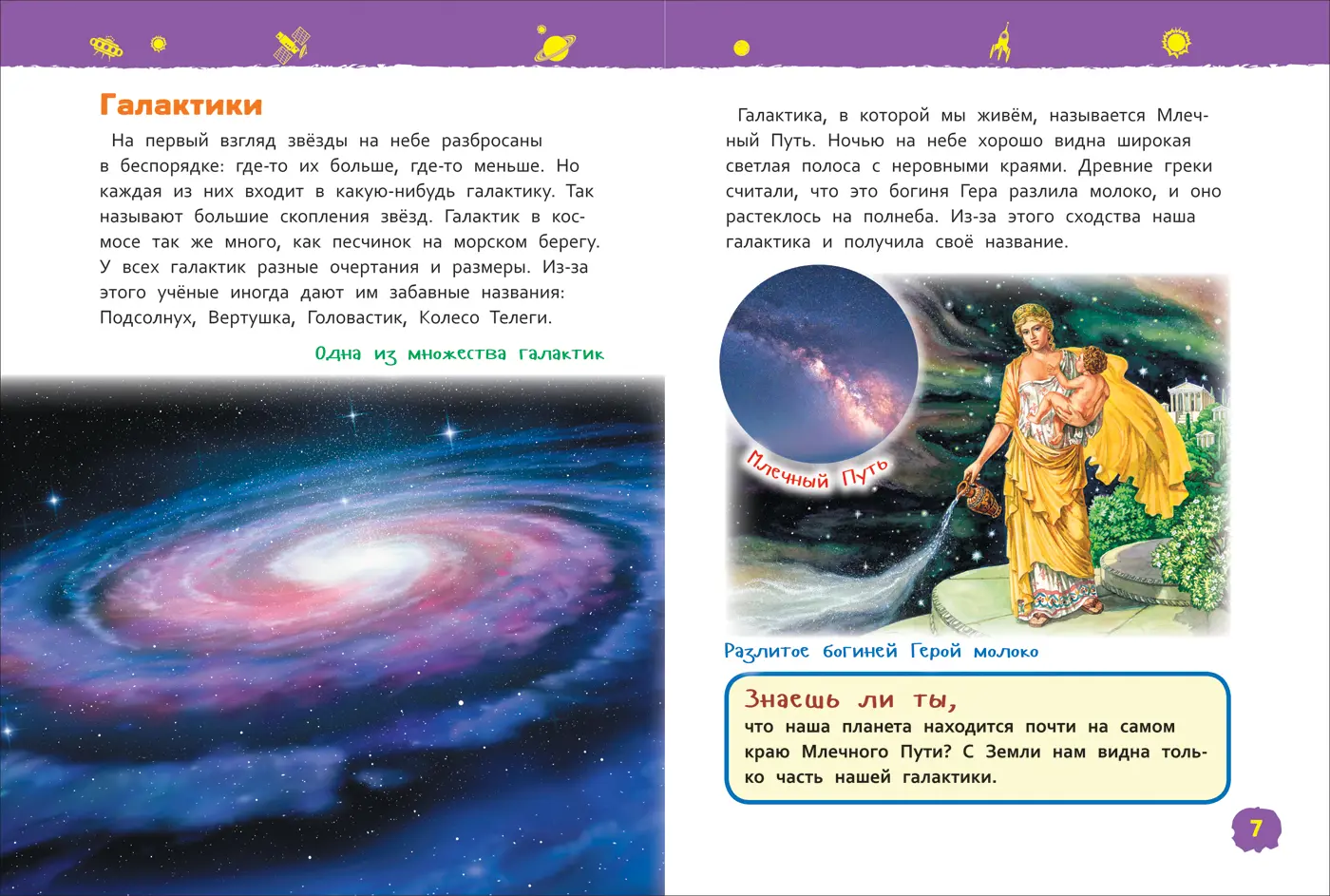 Эта книга познакомит ребёнка с миром космоса. Он узнает, что такое звезды и галактики, кометы и астероиды, какие планеты входят в Солнечную систему, как люди мечтали покорить космос и осуществили свою мечту.
