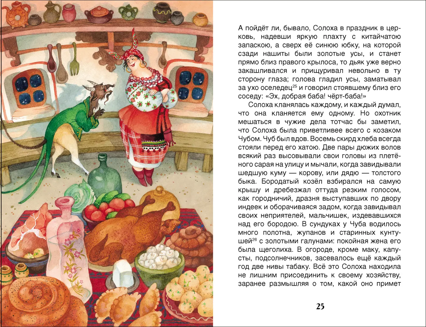 Повесть Н. В. Гоголя "Ночь перед Рождеством" из сборника "Вечера на хуторе близ Диканьки" отличает доброта, сказочность и мягкий юмор. И дети, и взрослые с интересом читают о том, как черт украл месяц, и о том, как кузнец Вакула летал к царице в Петербург за черевичками для своей возлюбленной Оксаны.