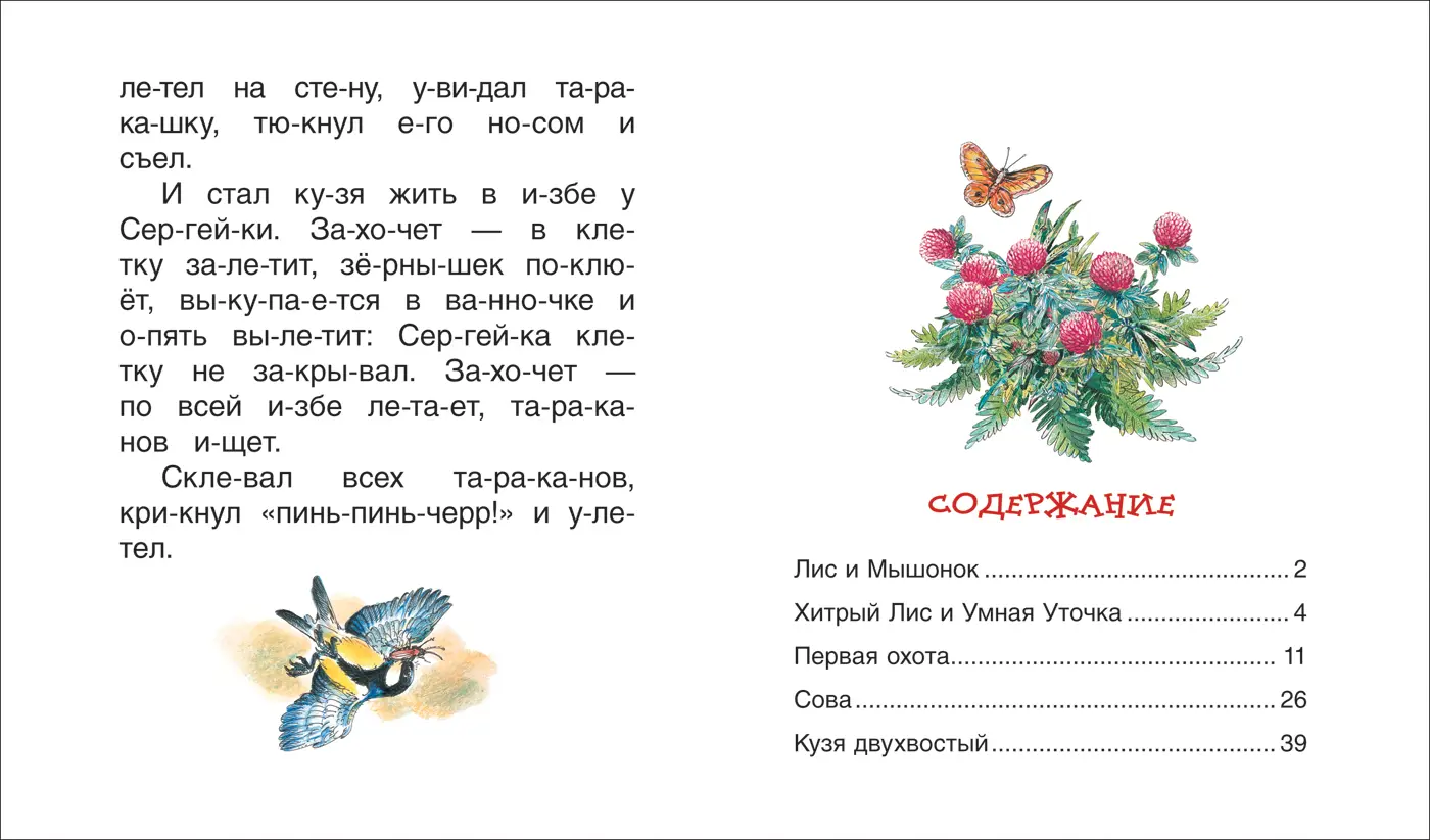 Серия "Читаем по слогам" разработана специально для малышей, которые только учатся читать. В этой книге собраны известные короткие рассказы В. В. Бианки: "Первая охота", "Сова", "Кузя двухвостый" и другие.