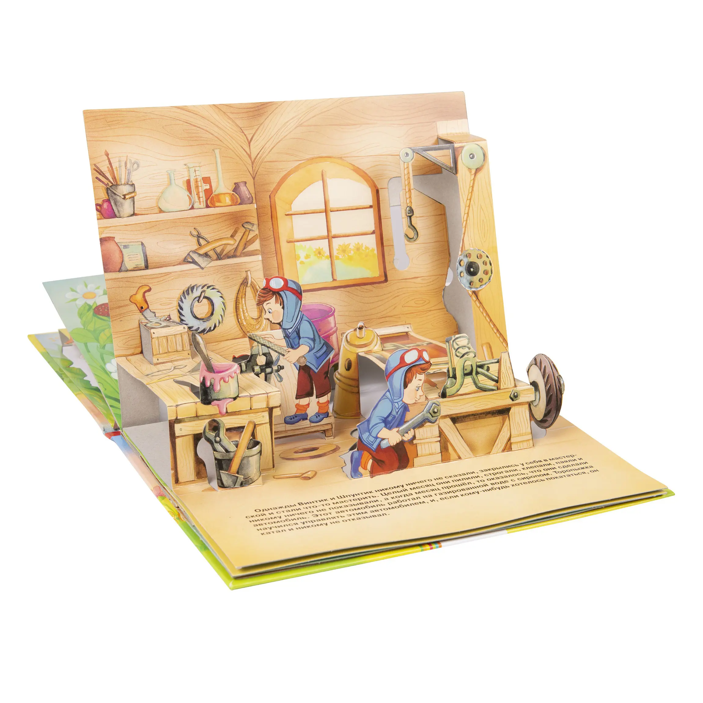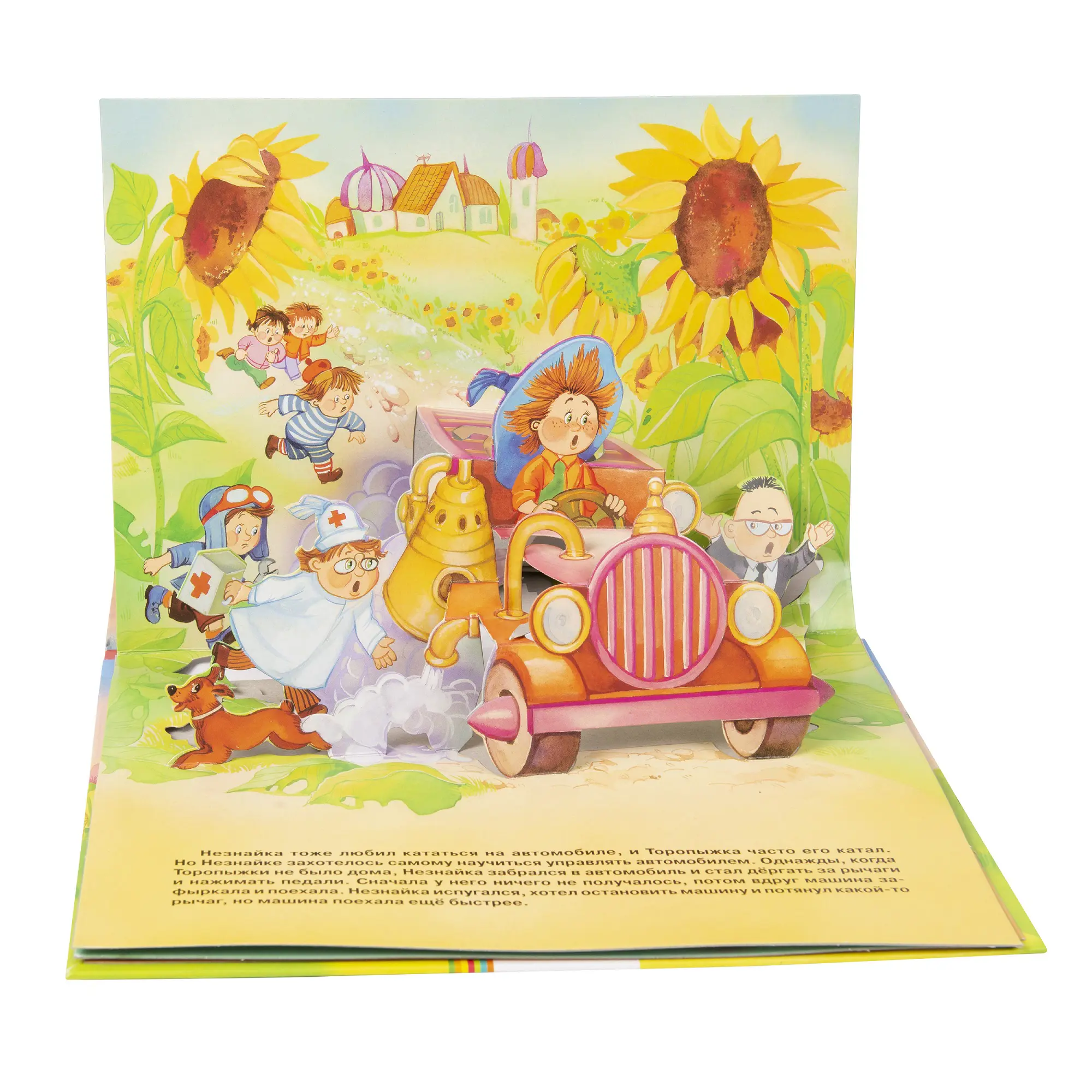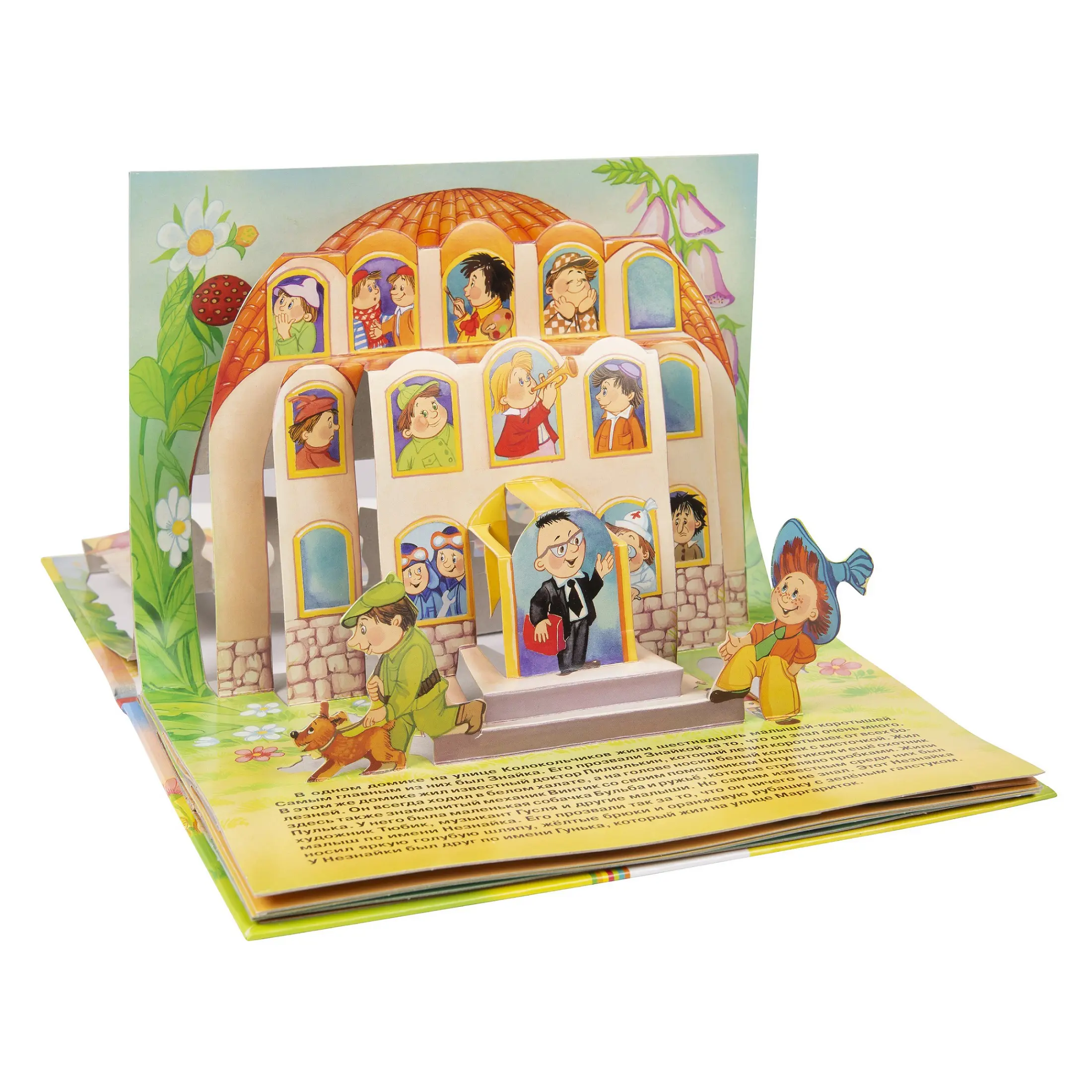 Незнайка, Винтик и Шпунтик, Доктор Пилюлькин и другие забавные персонажи Николая Носова оживают на страницах этой веселой и яркой книги, которая рассказывает о приключениях друзей в Цветочном городе. На каждом развороте раскрываются объемные панорамные конструкции, и книжка превращается для малыша в настоящий театр!