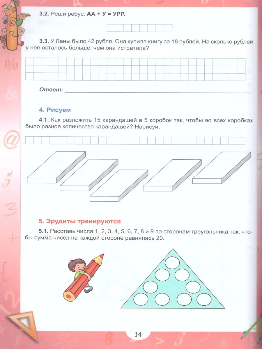 Задания в тетради разработаны с целью формирования у обучающихся 2 класса позитивного отношения к математике, развития активного самостоятельного творческого мышления, умения логически мыслить и анализировать.