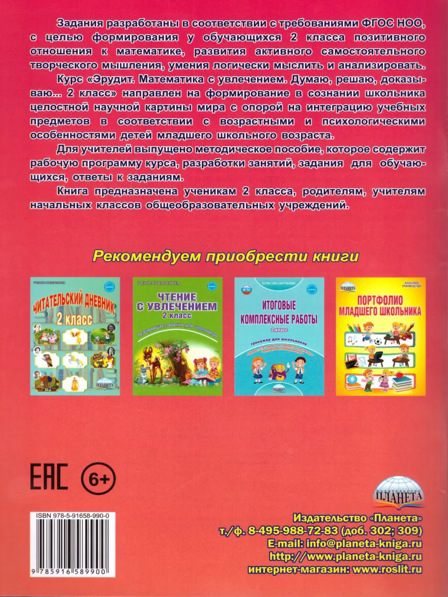 Курс «Эрудит. Математика с увлечением. Думаю, решаю, доказываю... 2 класс» направлен на формирование в сознании школьника целостной научной картины мира с опорой на интеграцию учебных предметов в соответствии с возрастными и психологическими особенностями детей младшего школьного возраста.