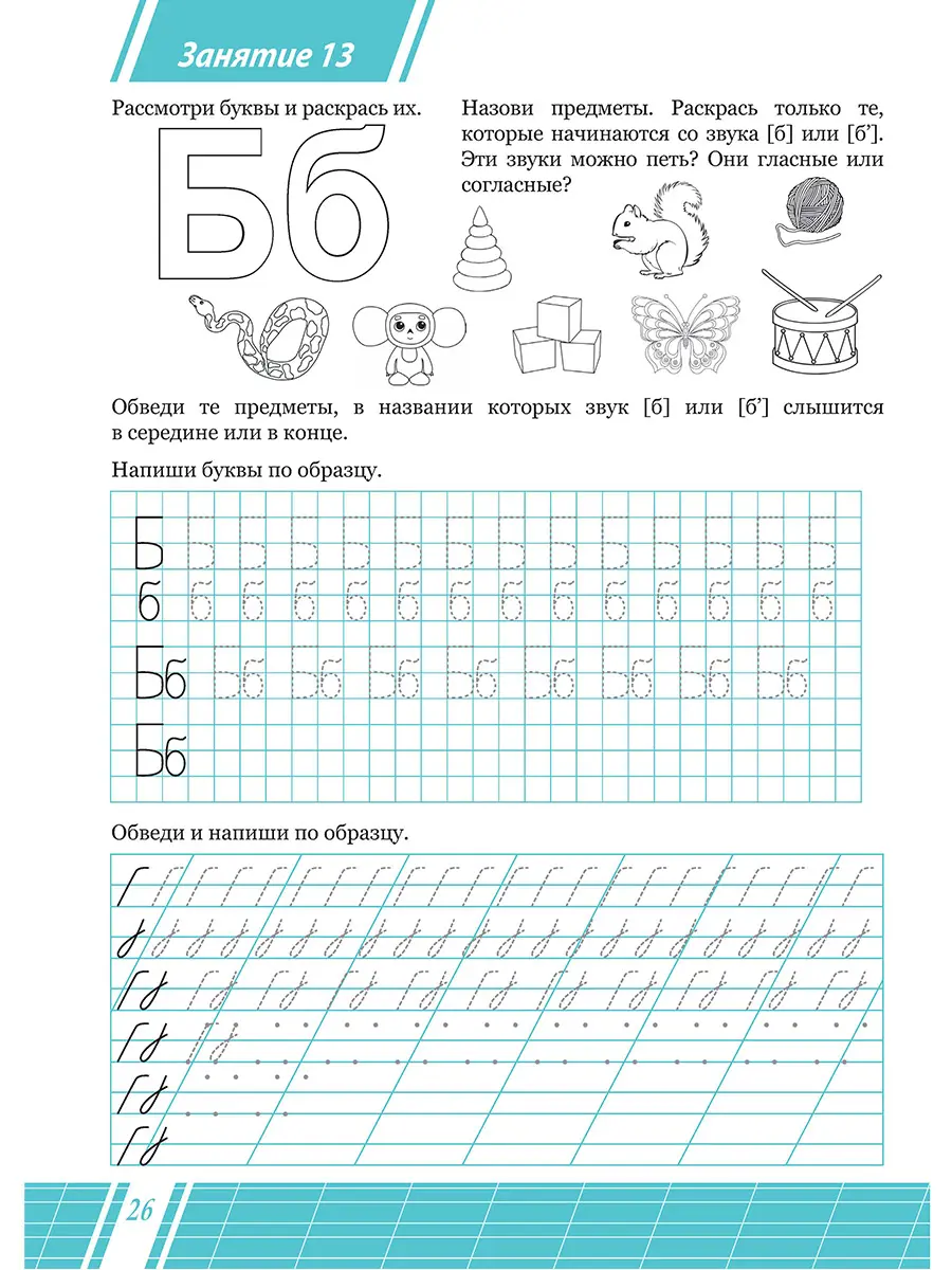 Данное пособие включает в себя задания по развитию мелкой моторики рук, развитию речи с целью подготовки детей 6-7 лет к обучению чтению и письму.В книге 26 занятий на знакомство с буквами русского алфавита. Каждое занятие включает в себя задания, направленные на формирование у детей устойчивого представления о букве и её образе. Задания помогут ребёнку научиться ориентироваться на листе в линию и начать осваивать слоговое чтение.