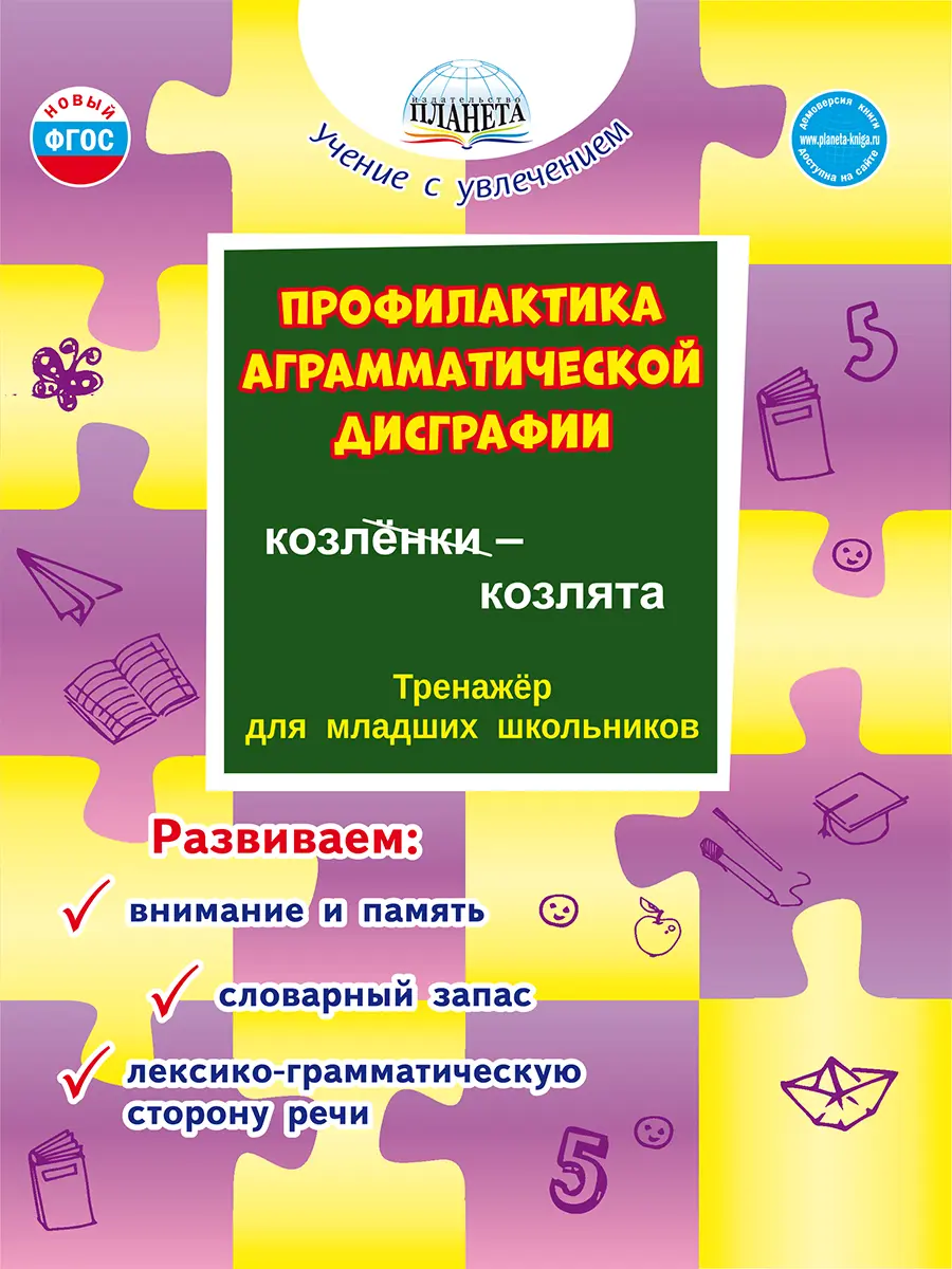 Одной из самых актуальных проблем в настоящее время является проблема коррекции специфических нарушений письменной речи у младших школьников. С целью повышения общей грамотности учащихся и профилактики аграмматической дисграфии был разработан и выпущен этот тренажёр.