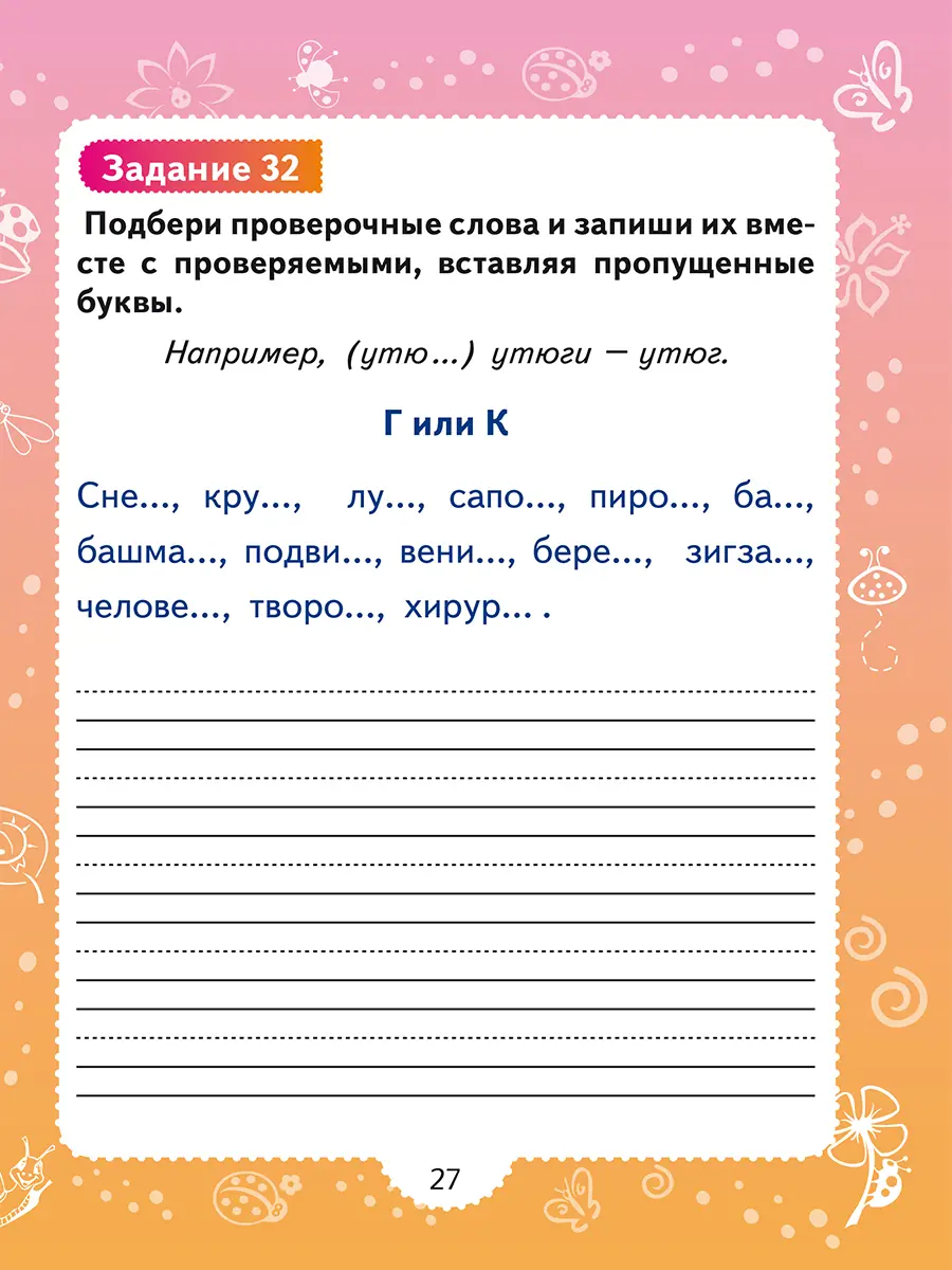 В тренажёре 60 заданий для учащихся 2–4 классов. Выполняя эти задания, школьники смогут повторить и закрепить материал, изученный в школе, развить зрительную и слуховую дифференциацию, а главное научиться писать без ошибок.