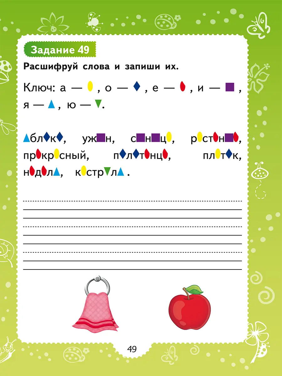 В тренажёре 56 заданий для учащихся 2–4 классов. Выполняя эти задания, школьники смогут повторить и закрепить материал, изученный в школе, развить зрительно пространственные представления и научиться писать без ошибок.