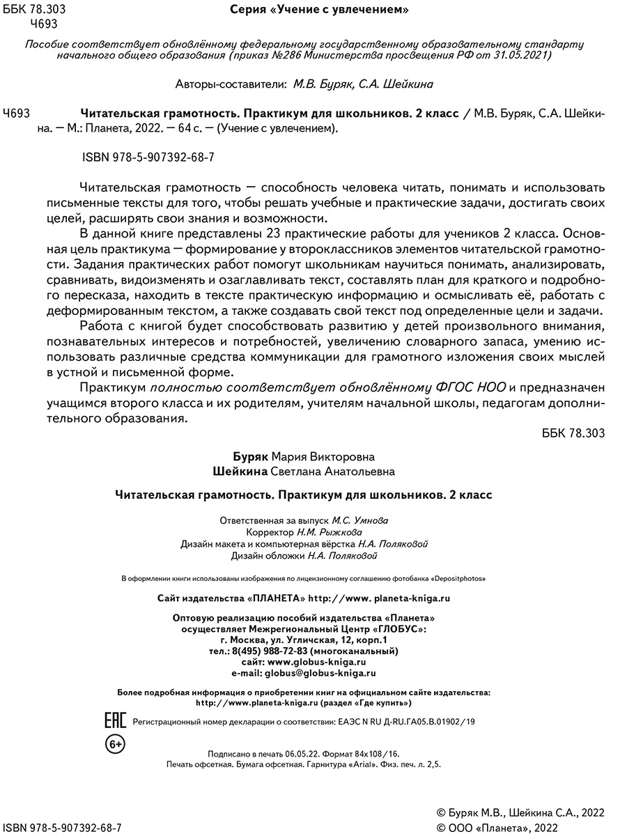 В данной книге представлены 23 практические работы для учеников 2 класса. Основная цель практикума – формирование у второклассников элементов читательской грамотности. Задания практических работ помогут школьникам научиться понимать, анализировать, сравнивать, видоизменять и озаглавливать текст, составлять план для краткого и подробного пересказа, находить в тексте практическую информацию и осмысливать её, работать с деформированным текстом, а также создавать свой текст под определенные цели и задачи.