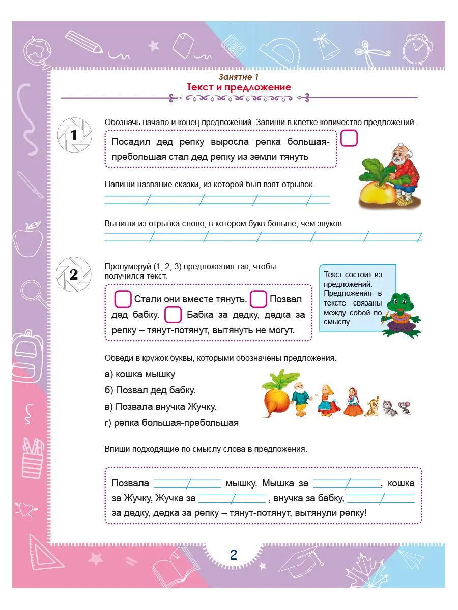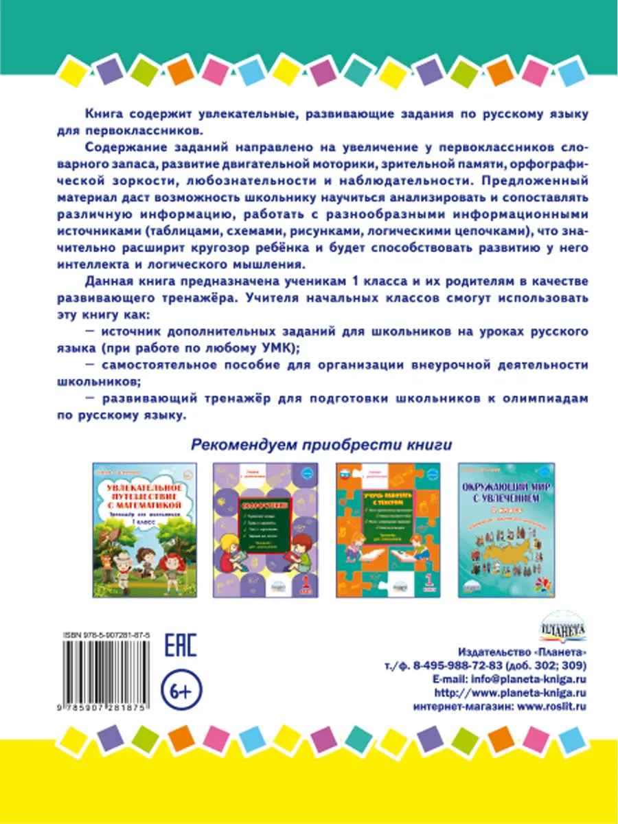 Книга содержит увлекательные, развивающие задания по русскому языку для первоклассников.