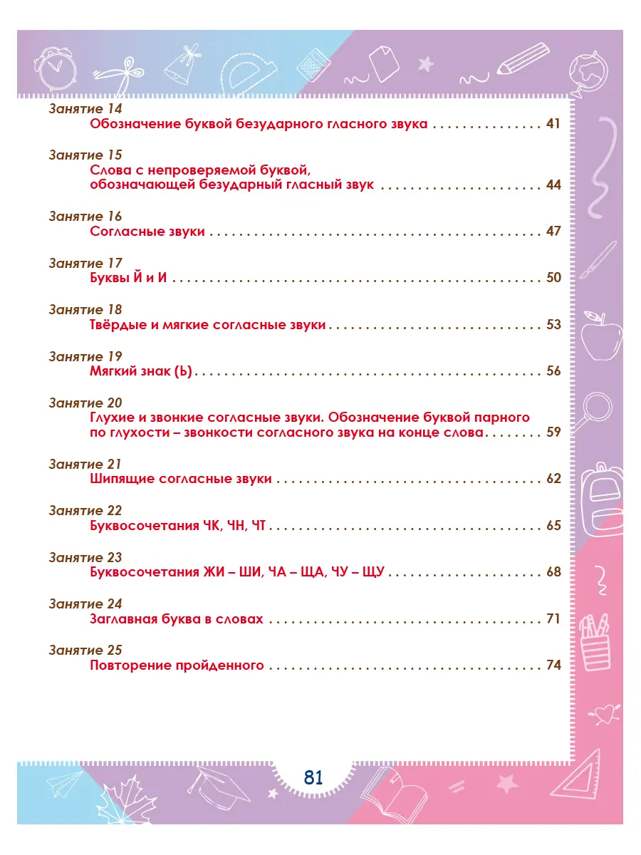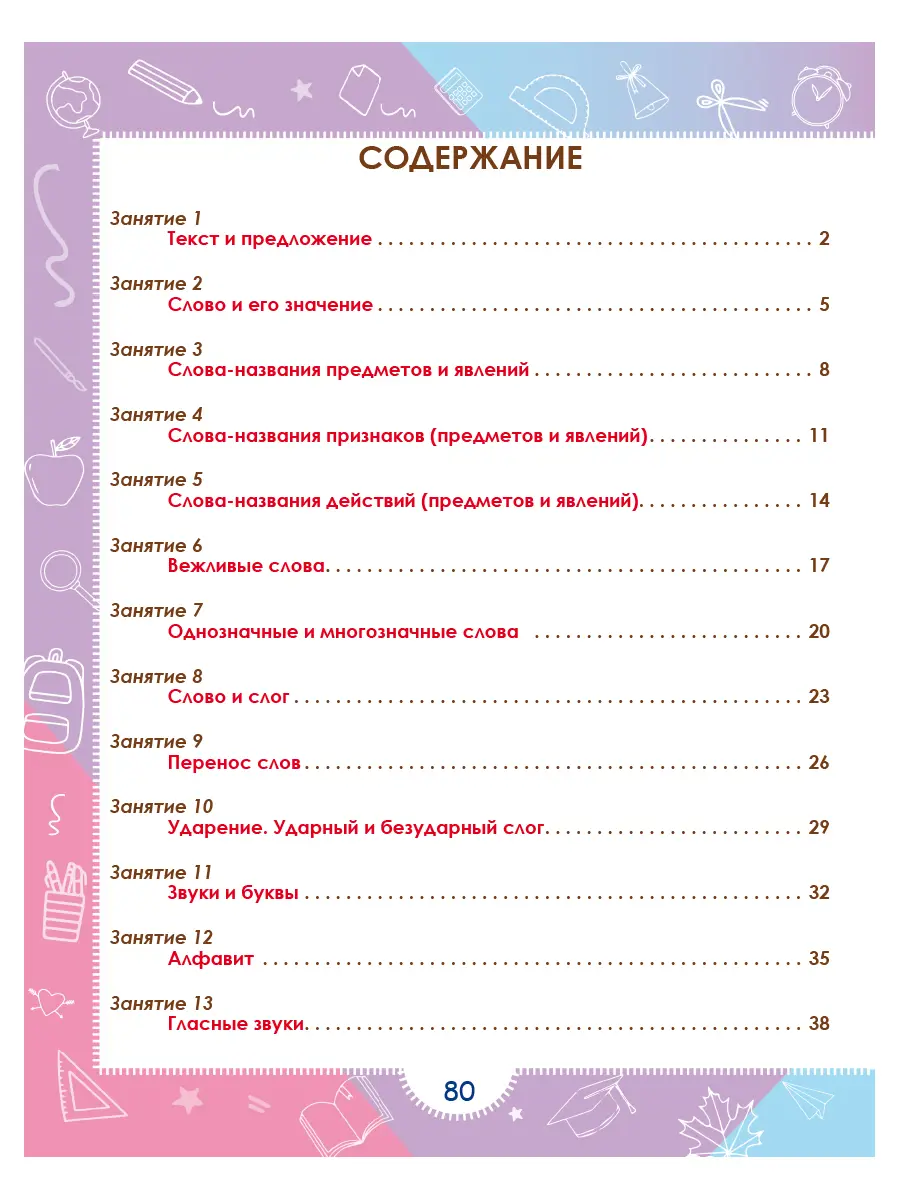 Содержание заданий направлено на увеличение у первоклассников словарного запаса, развитие двигательной моторики, зрительной памяти, орфографической зоркости, любознательности и наблюдательности. Предложенный материал даст возможность школьнику научиться анализировать и сопоставлять различную информацию, работать с разнообразными информационными источниками (таблицами, схемами, рисунками, логическими цепочками), что значительно расширит кругозор ребёнка и будет способствовать развитию у него интеллекта и логического мышления.