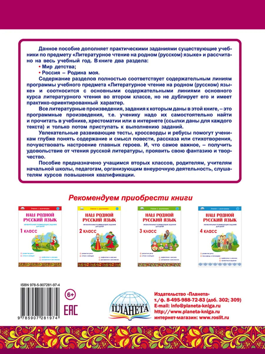 Литературное чтение на родном (русском) языке. 2 класс. Увлекательные развивающие задания