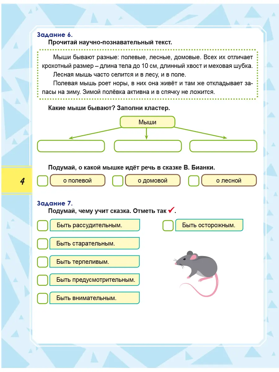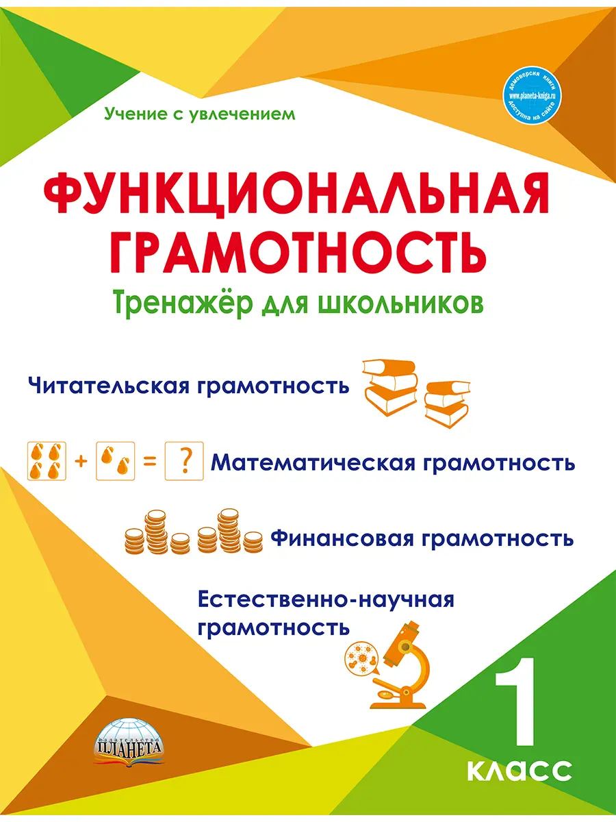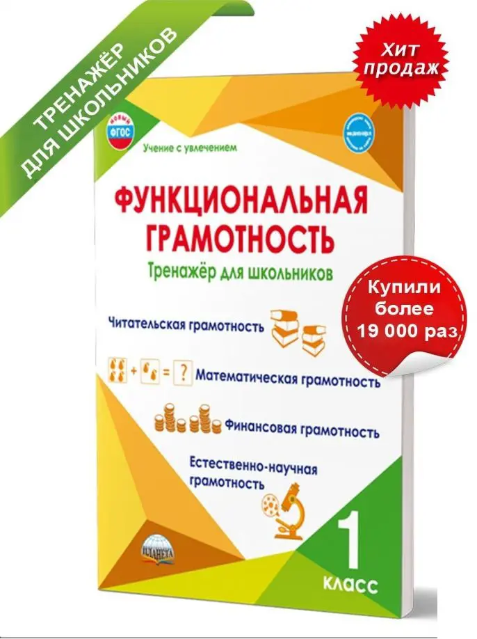Формирование функциональной грамотности у младших школьников, как правило, ведётся по четырём направлениям: читательская, математическая, финансовая и естественно-научная. Для того чтобы у первоклассников процесс формирования функциональной грамотности проходил качественно, в этом тренажёре для детей собраны задания различных видов: игры, ребусы, опыты, задания на сравнение, анализ и классификацию. Выполнение заданий будет способствовать развитию у детей произвольного внимания, познавательных интересов и потребностей, увеличению словарного запаса, умению использовать различные средства коммуникации для грамотного изложения своих мыслей в устной и письменной форме.