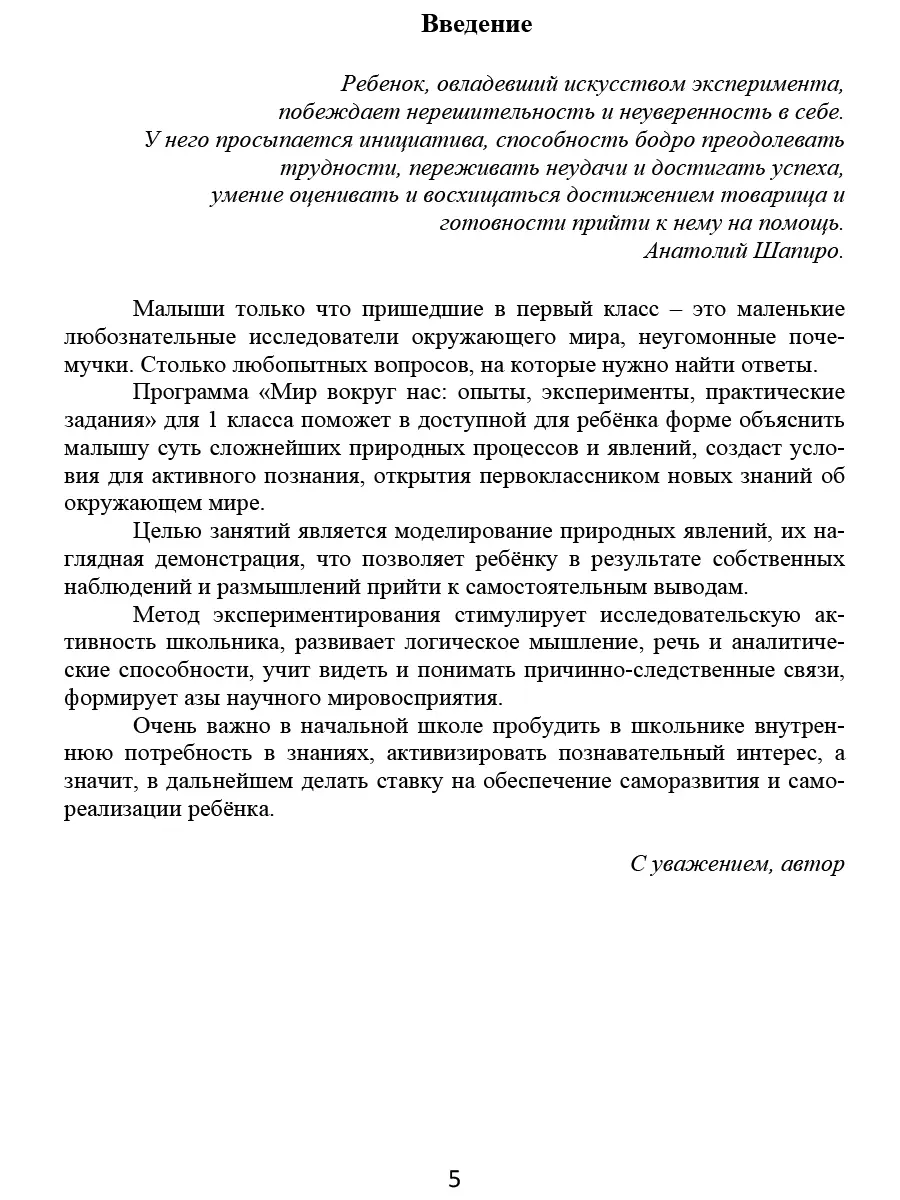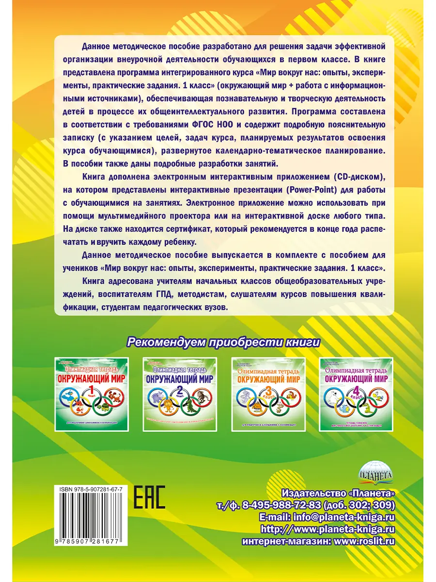Данное методическое пособие выпускается в комплекте с пособием для учеников «Мир вокруг нас: опыты, эксперименты, практические задания. 1 класс».
