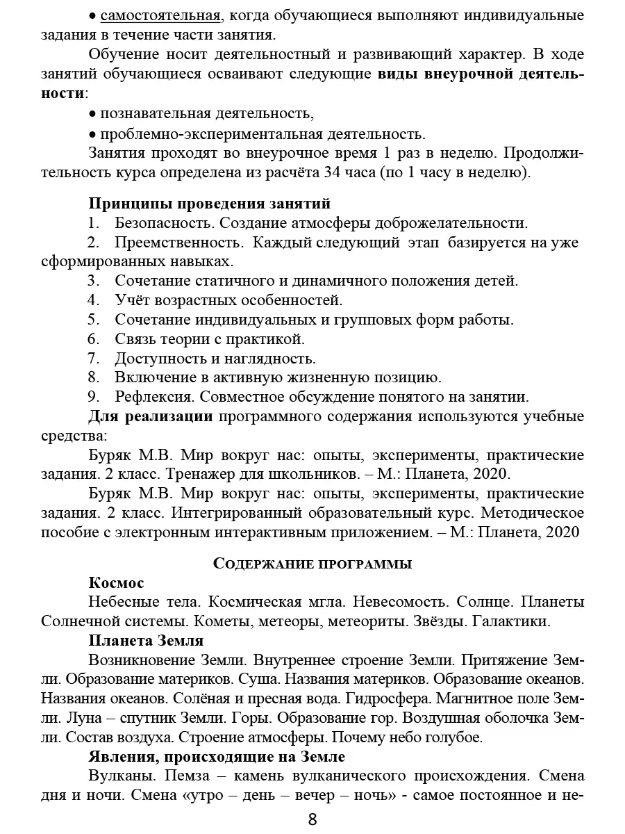 Данное методическое пособие разработано для решения задачи эффективной организации внеурочной деятельности обучающихся во втором. В книге представлена программа интегрированного курса «Мир вокруг нас: опыты, эксперименты, практические задания. 2 класс» (окружающий мир + работа с информационными источниками), обеспечивающая познавательную и творческую деятельность детей в процессе их общеинтеллектуального развития. Программа составлена в соответствии с требованиями ФГОС НОО и содержит подробную пояснительную записку (с указанием целей, задач курса, планируемых результатов освоения курса обучающимися), развернутое календарно-тематическое планирование. В пособии также даны подробные разработки занятий.