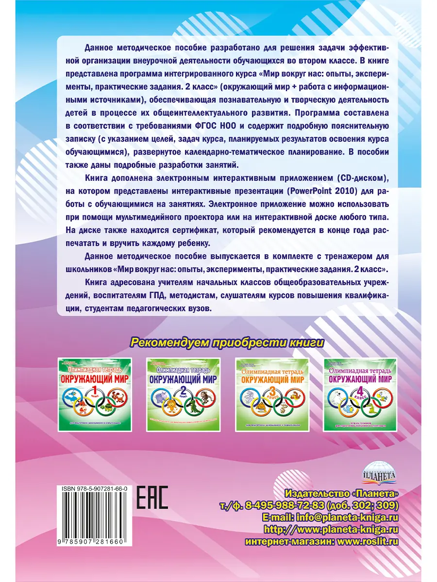 Данное методическое пособие выпускается в комплекте с пособием для учеников «Мир вокруг нас: опыты, эксперименты, практические задания. Тренажер для школьников. 2 класс».