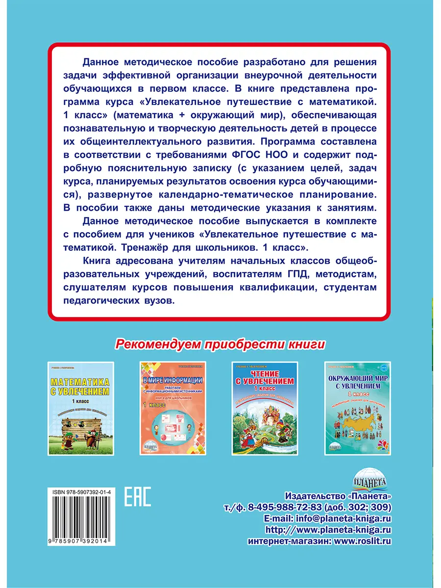 Данное методическое пособие выпускается в комплекте с пособием для учеников «Увлекательное путешествие с математикой. Тренажер для школьников. 1 класс».