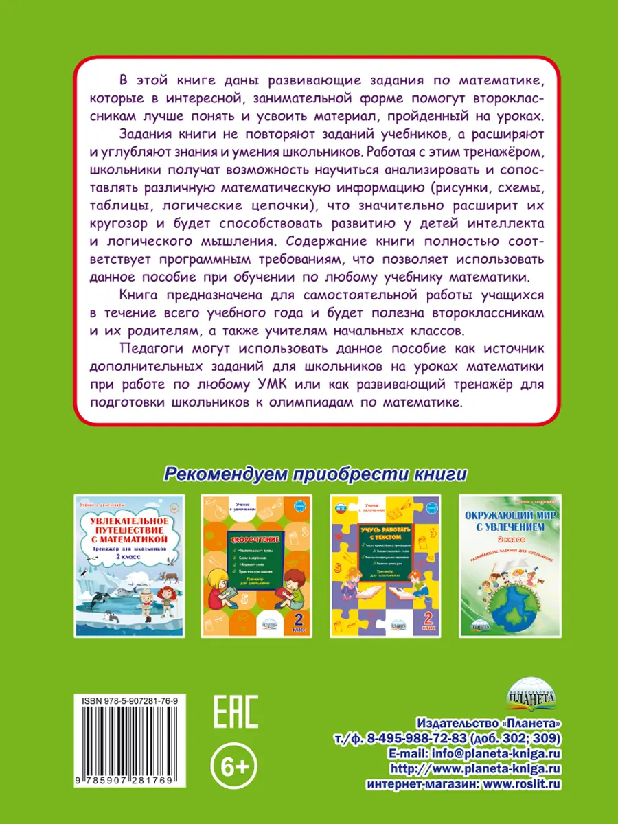 В этой книге даны развивающие задания по математике, которые в интересной, занимательной форме помогут второклассникам лучше понять и усвоить материал, пройденный на уроках.