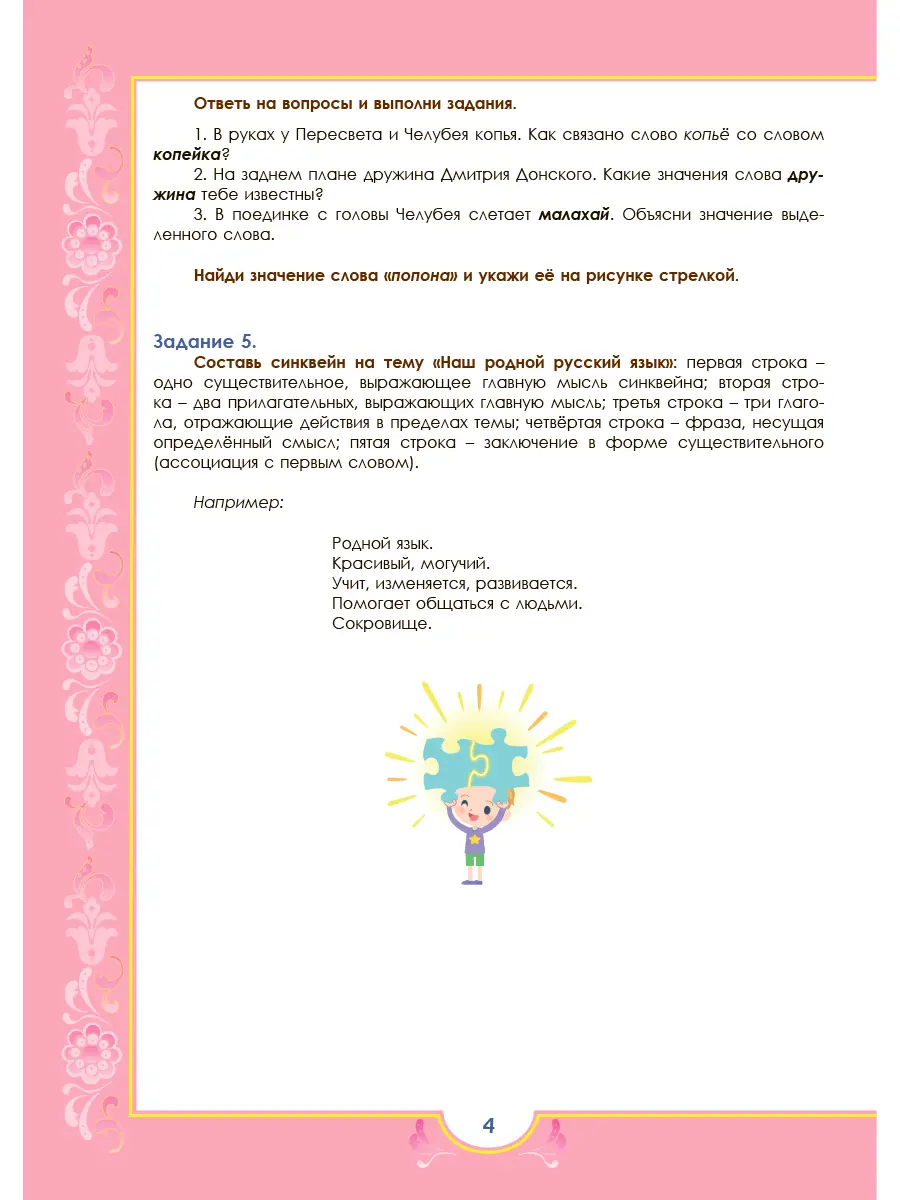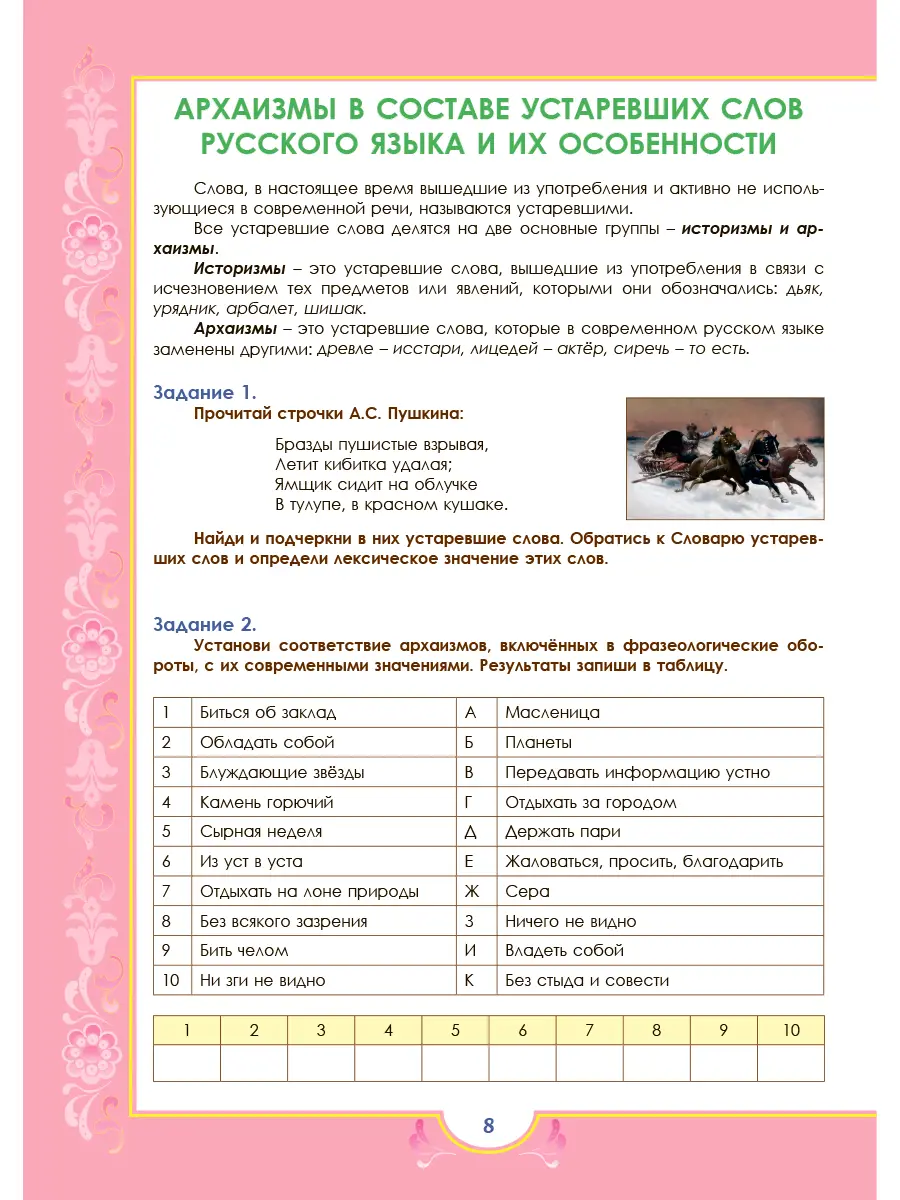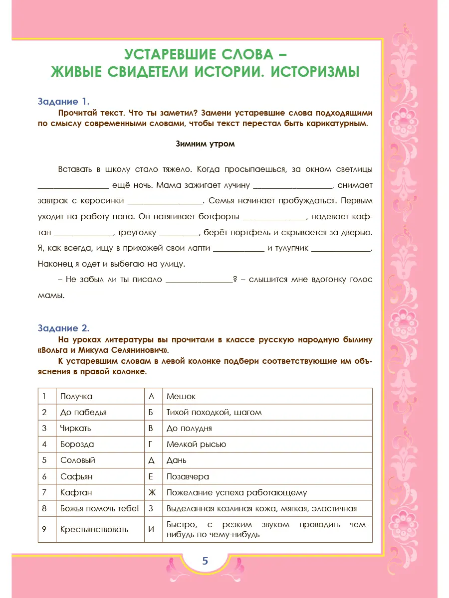 Тематические развивающие задания различной степени сложности обеспечат интенсивное развитие речевых, интеллектуальных, творческих способностей школьников, расширят у них читательский, лингвистический и культурологический кругозор.