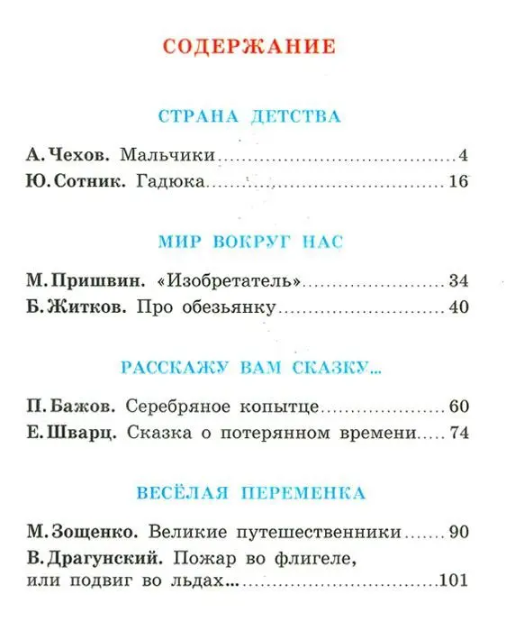 В сборники вошли рекомендованные для прочтения в 3 и 4 классах лучшие детские произведения классиков русской литературы: М.Пришвина, К.Паустовского, В.Драгунского, А.Чехова, М.Зощенко, Ю.Сотника, А.Платонова и других.