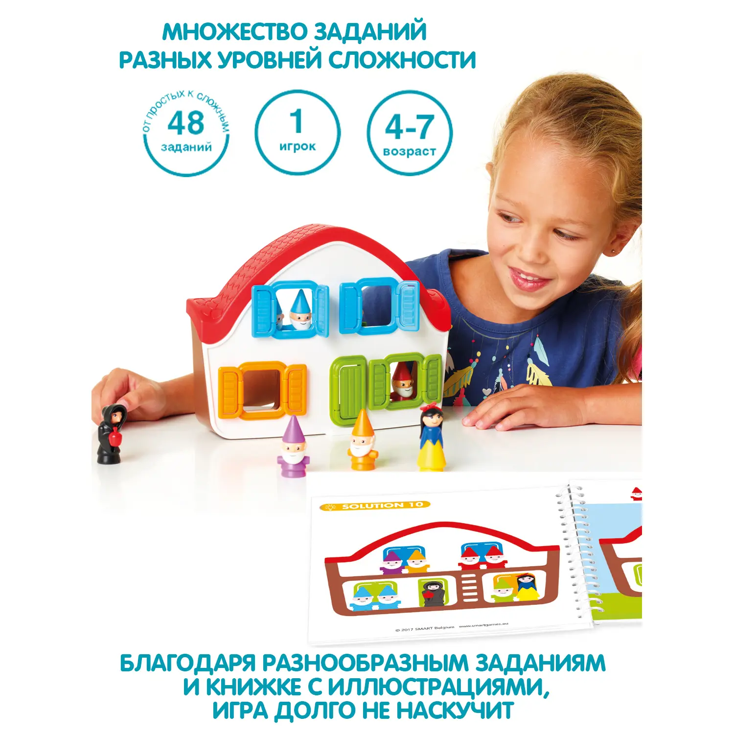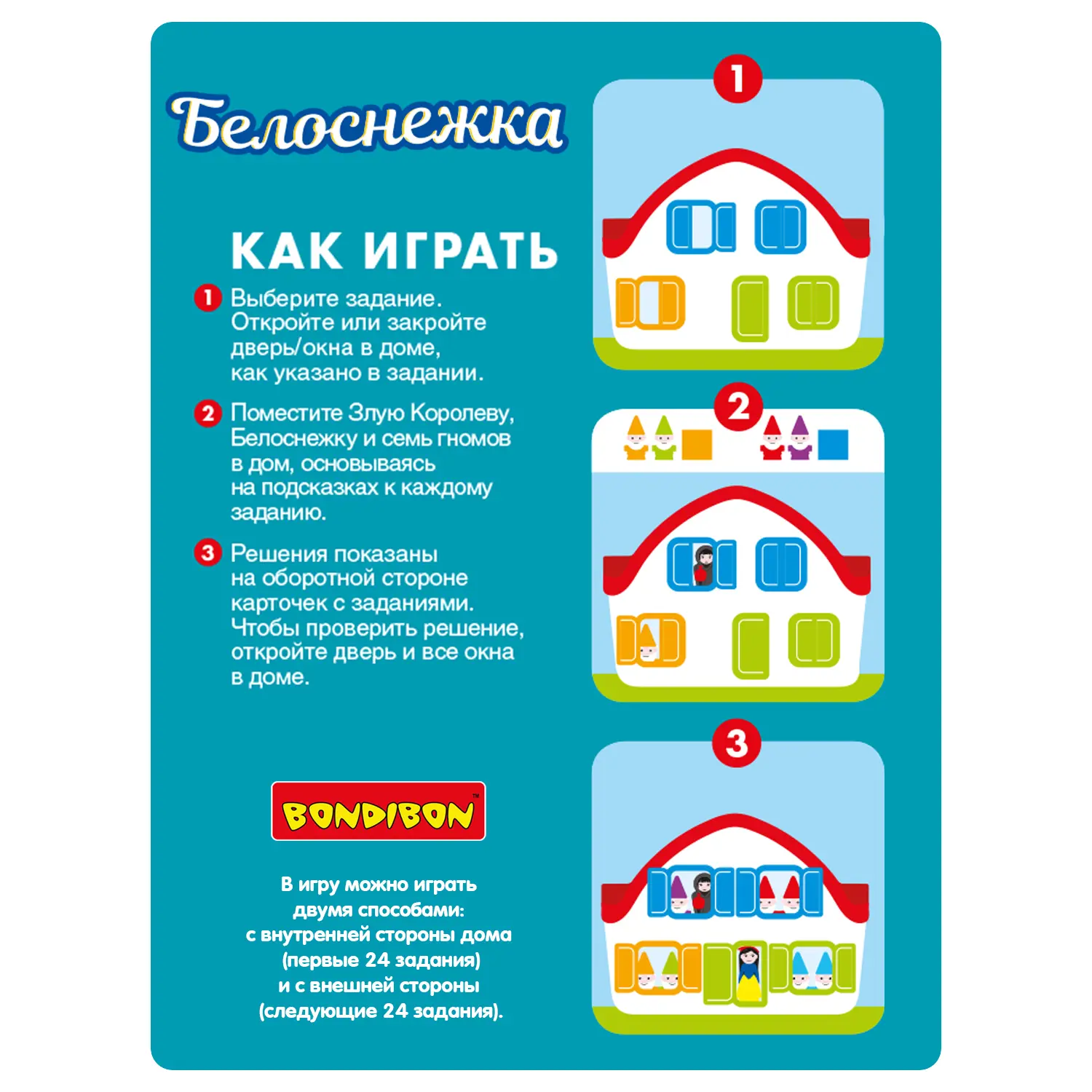 Сыграйте в «Белоснежку», разместив всех персонажей внутри дома. Символы в каждой выбранной карточке с заданием указывают на то, кто из персонажей и где должен быть размещён. Вы сможете помочь семи гномам найти Белоснежку?