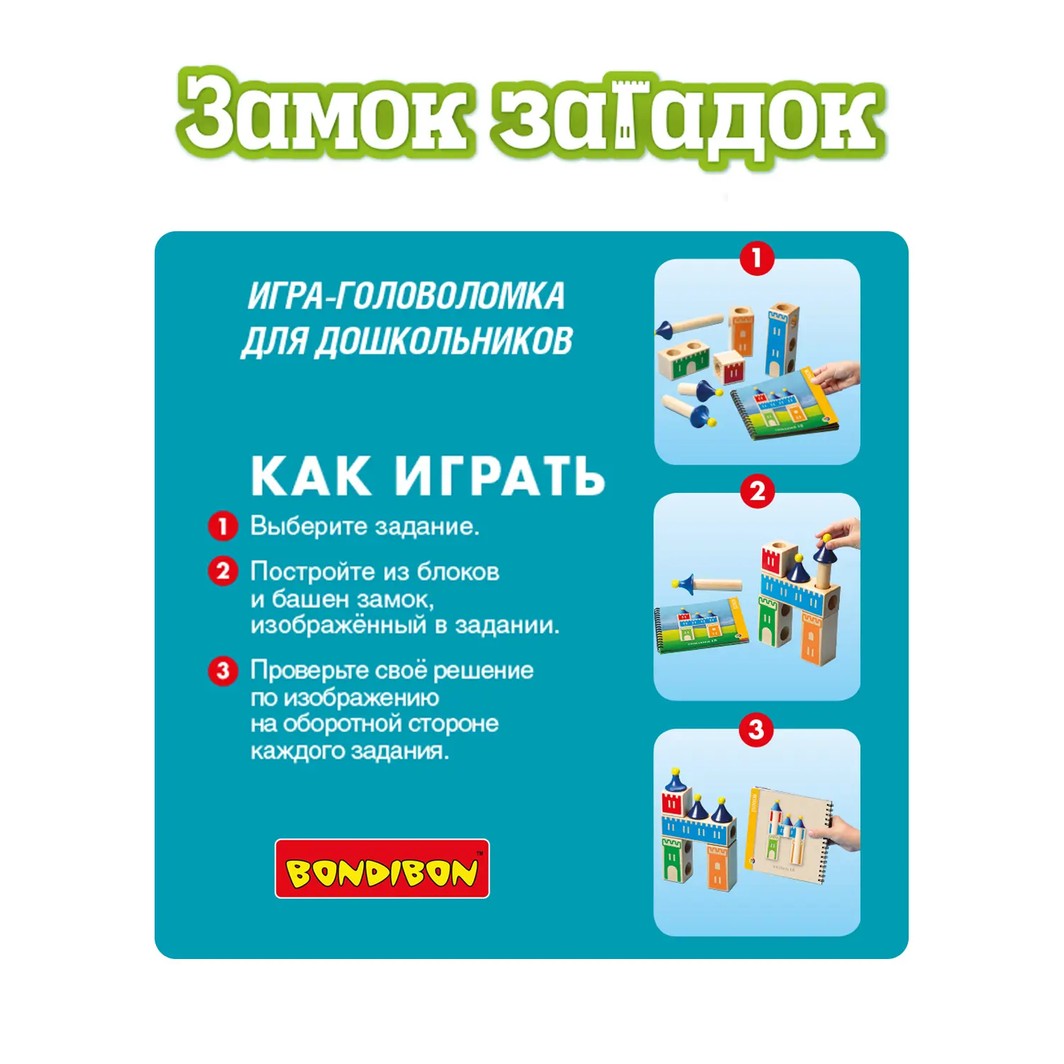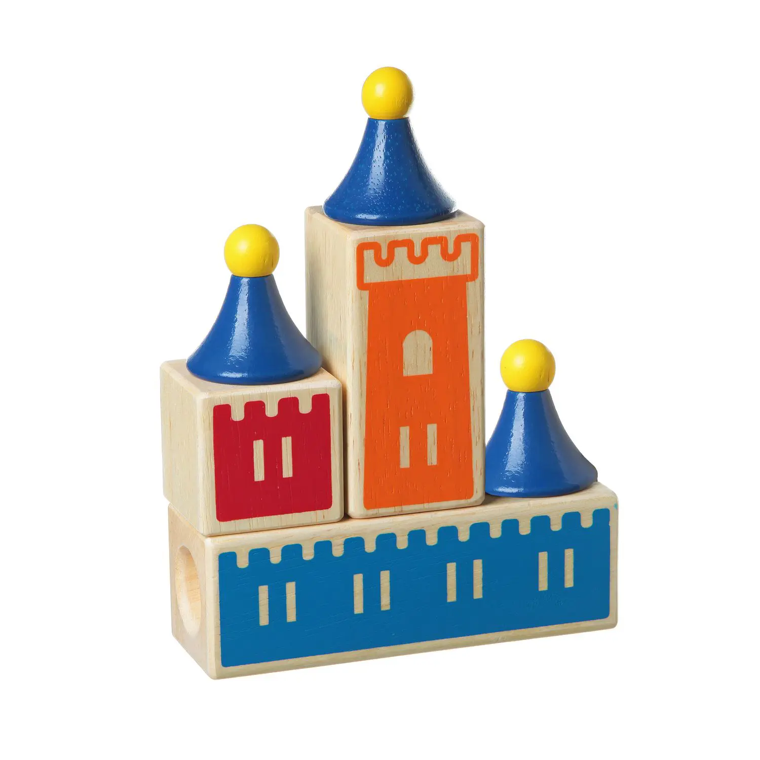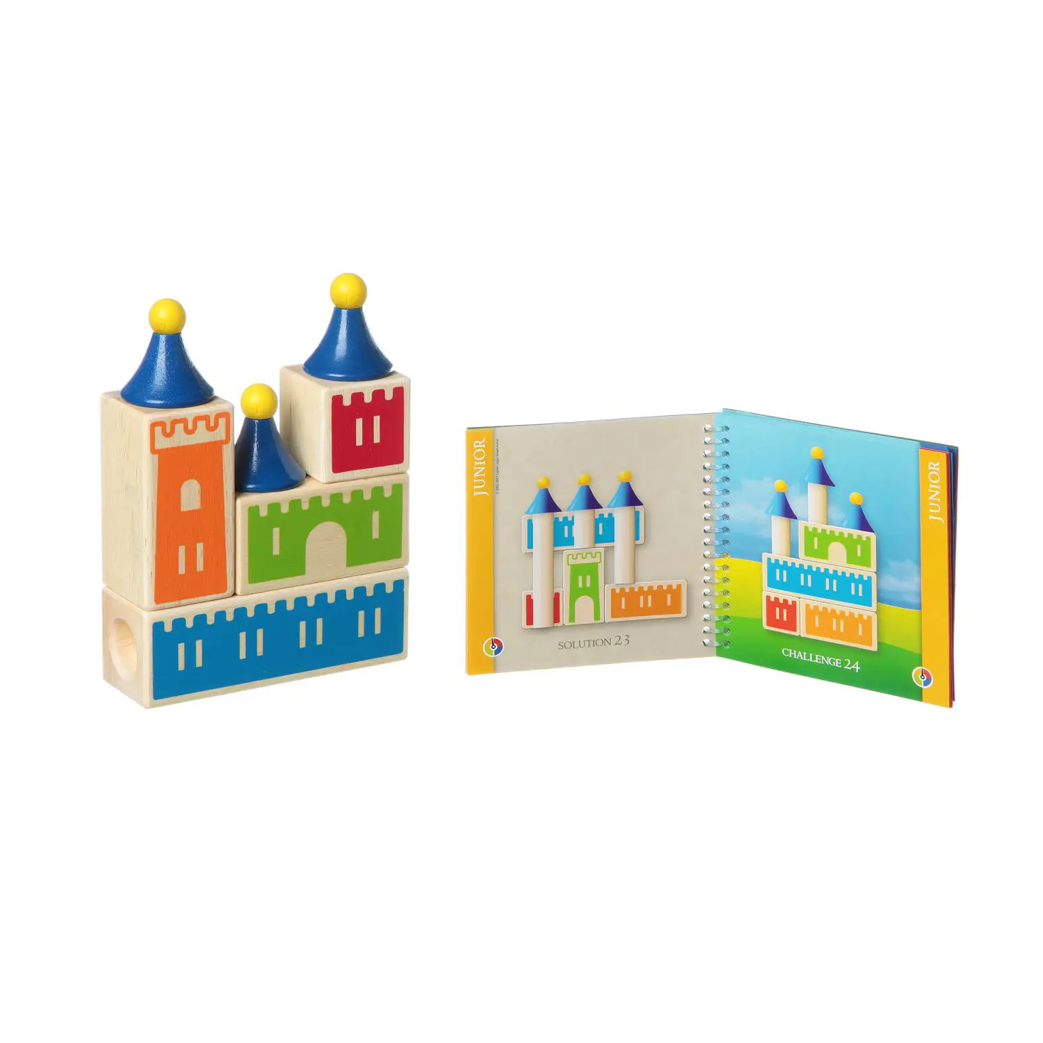 Постройте замок из деревянных деталей в соответствии с прилагаемыми заданиями, блок за блоком, башню за башней! Для этого придется задействовать ум и сообразительность, поскольку башни имеют разный диаметр, а блоки – разные отверстия, и правильный ответ может быть только один!