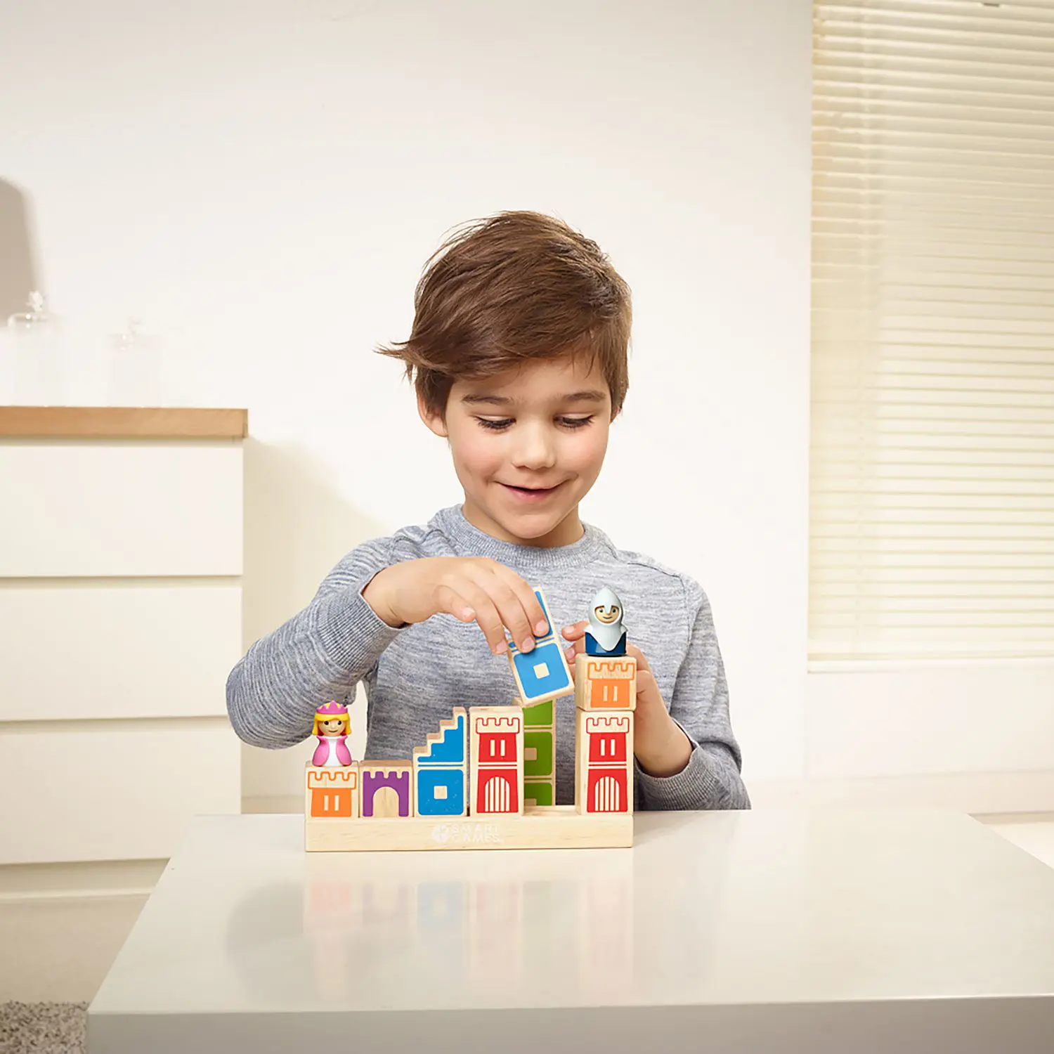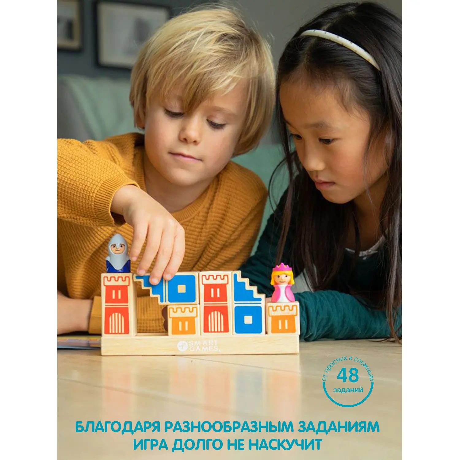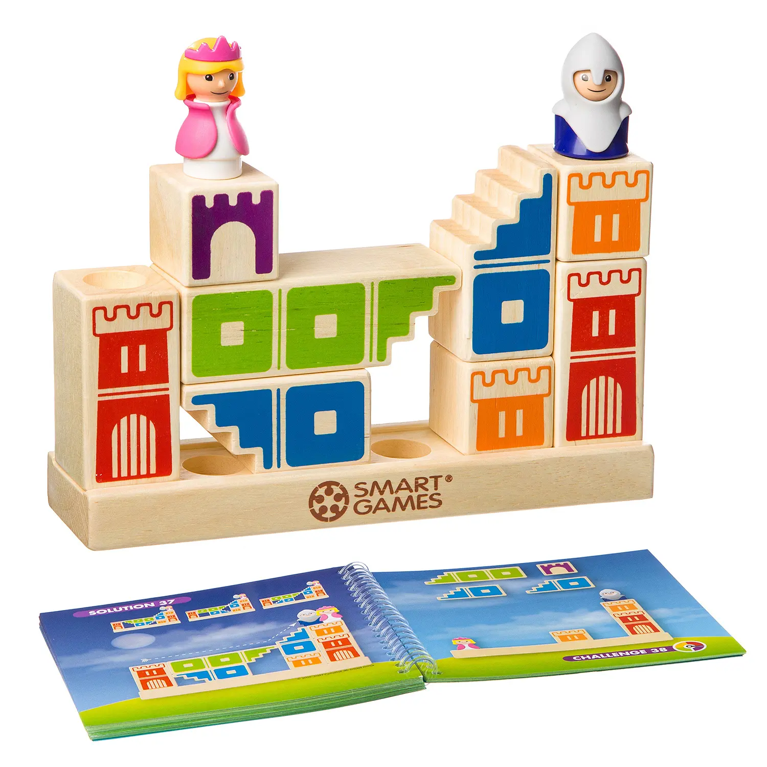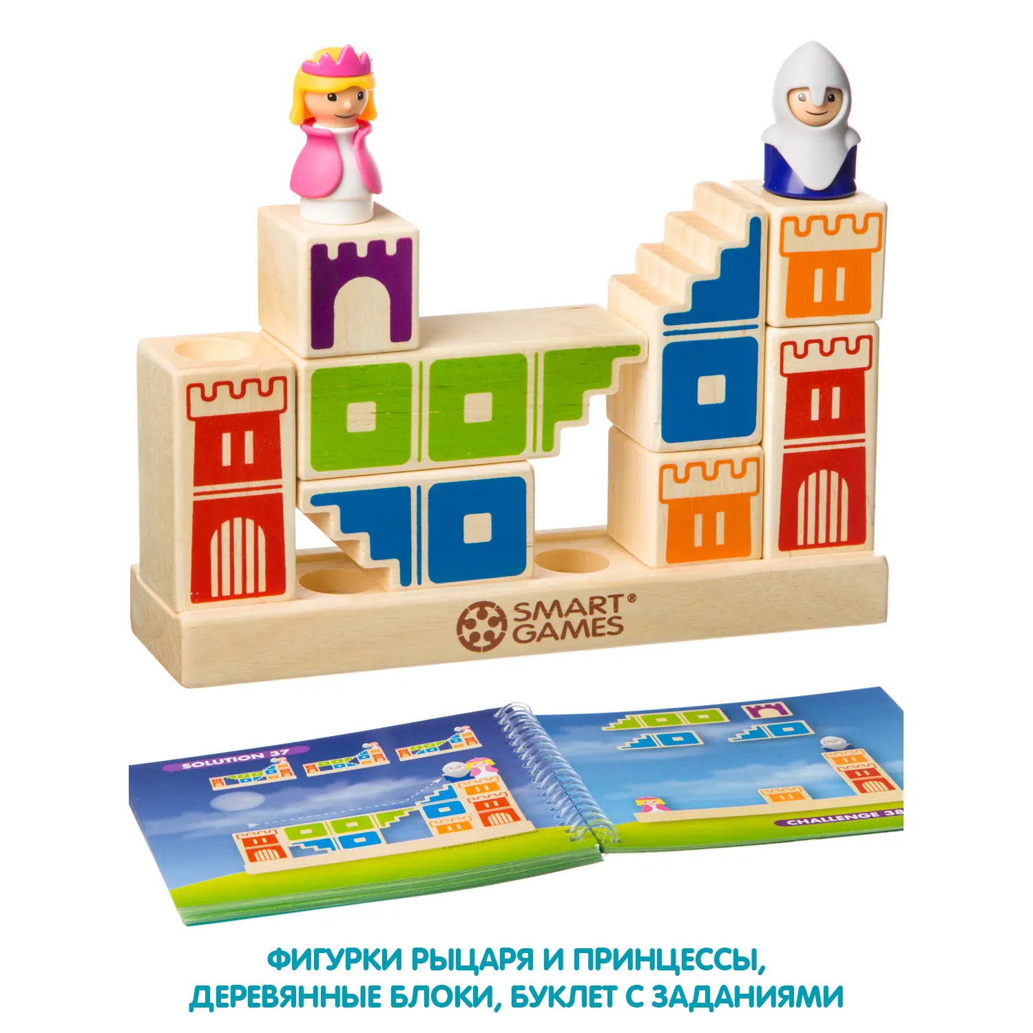 Рыцарь и его прекрасная принцесса оказались разлучены и заточены в разные башни. Расположите красивые деревянные башни и лестницы таким образом, чтобы рыцарь смог пройти по ним и встретиться с принцессой.
