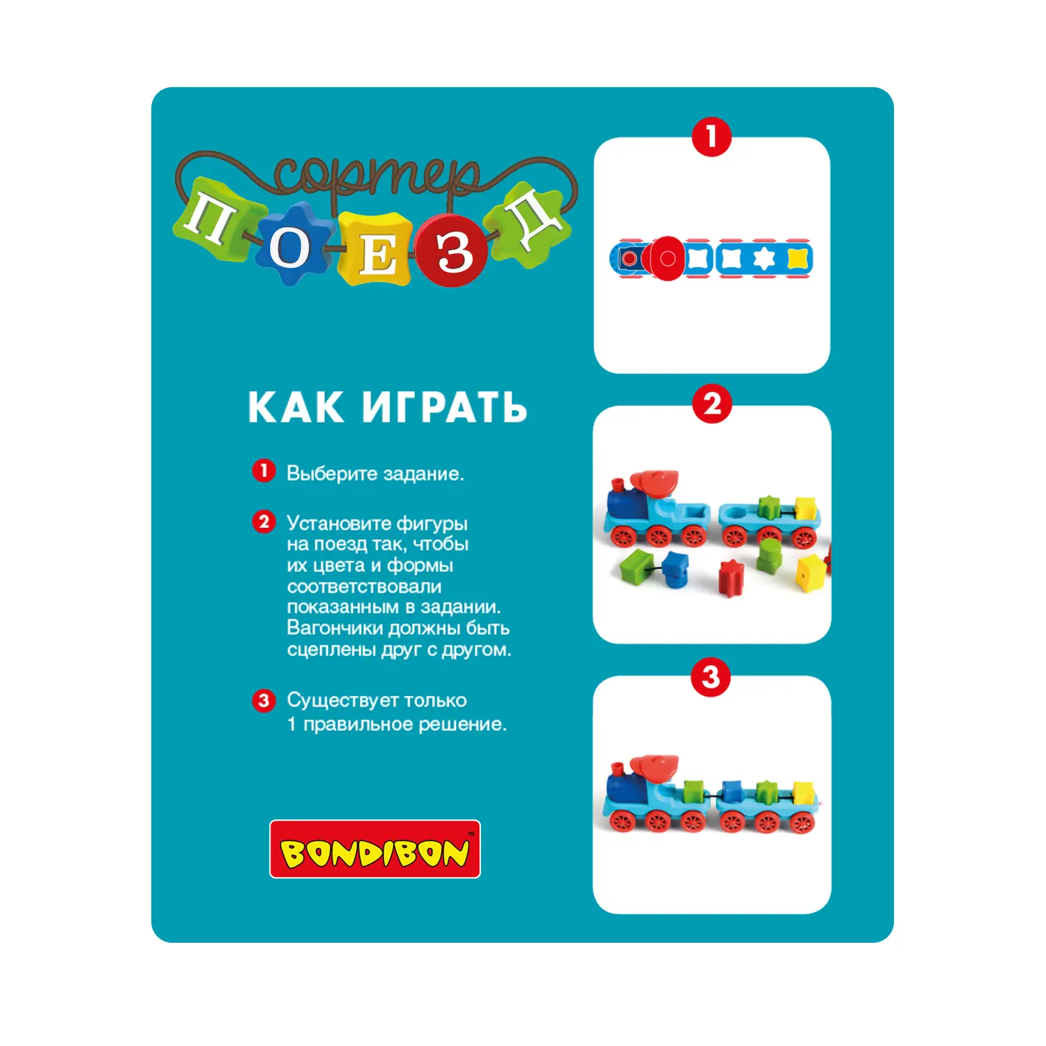 Цель игры: установить блоки на поезд таким образом, чтобы последовательность их цветов и форм соответствовала выбранному заданию, и все вагончики были сцеплены с локомотивом.