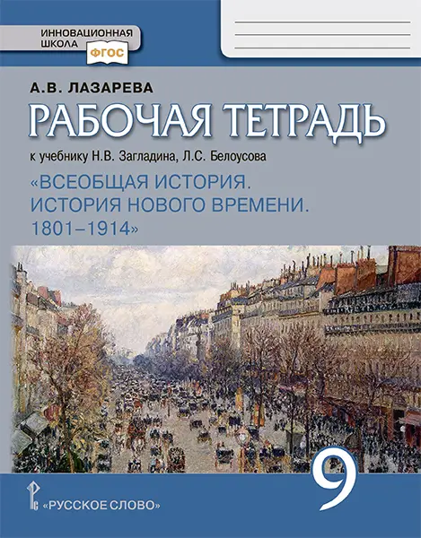 Рабочая тетрадь к учебнику Н.В. Загладина, Л.С. Белоусова «Всеобщая история. История Нового времени. 1801–1914» для 9 класса содержит задания различных типов и уровней сложности.