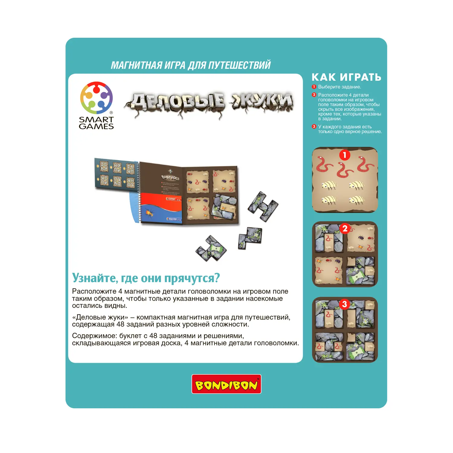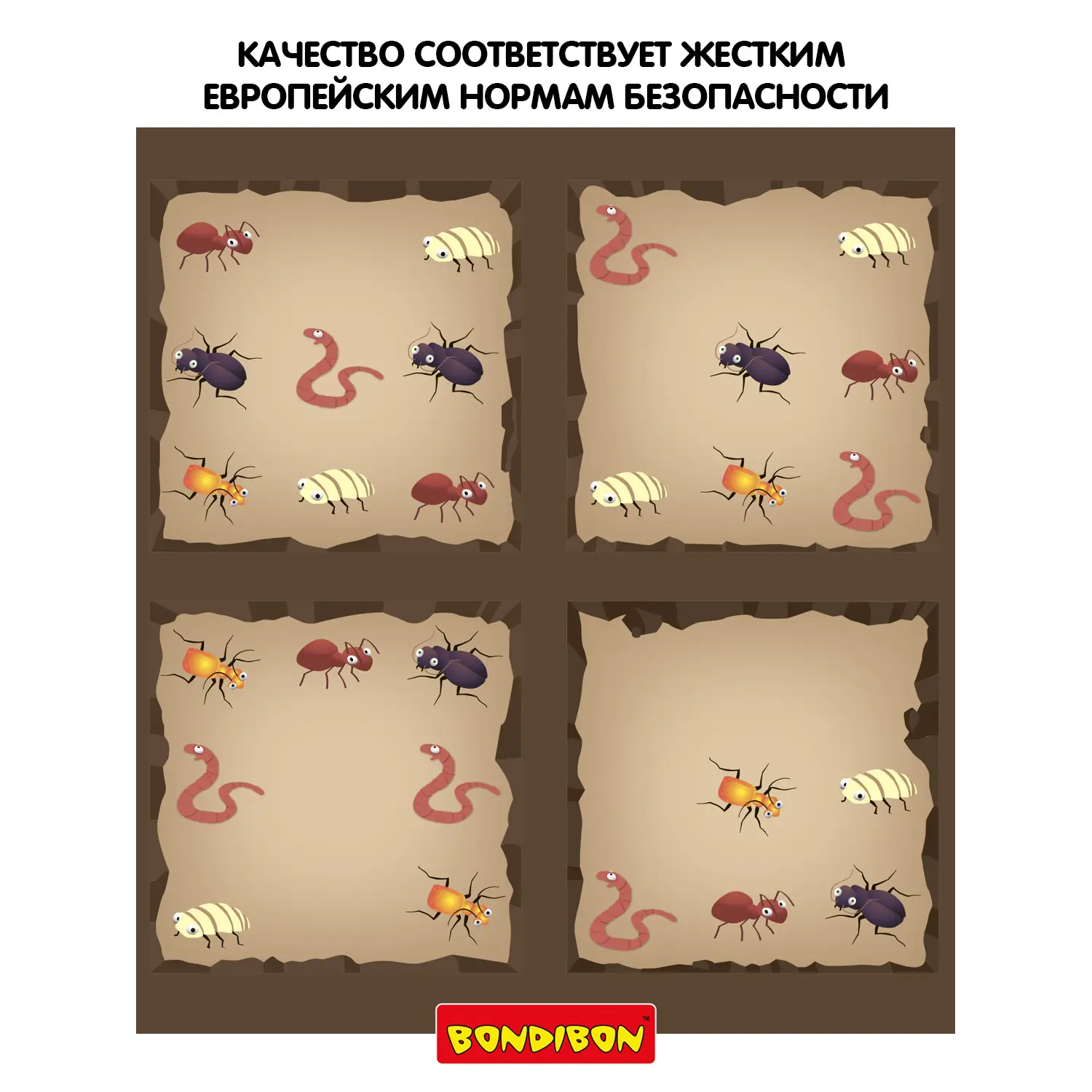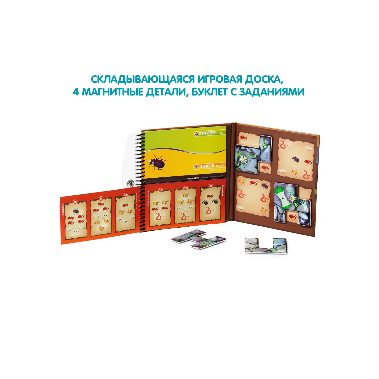 В карточке с заданиями указано, какие насекомые должны остаться, а каких надо закрыть, переставляя магнитные детали. Игра не только увлекает, но и обучает, развивает логическое мышление, зрительное и пространственное восприятие.