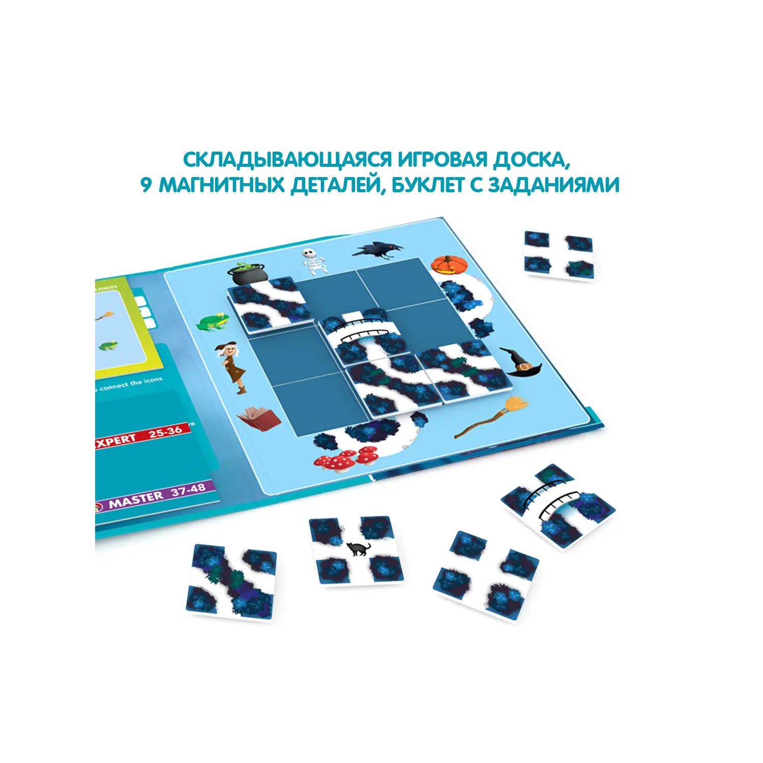 В комплекте блокнот в твердом переплете с магнитной подложкой на пружине, 9 магнитных деталей, буклет с 48 заданиями от простых до очень сложных.