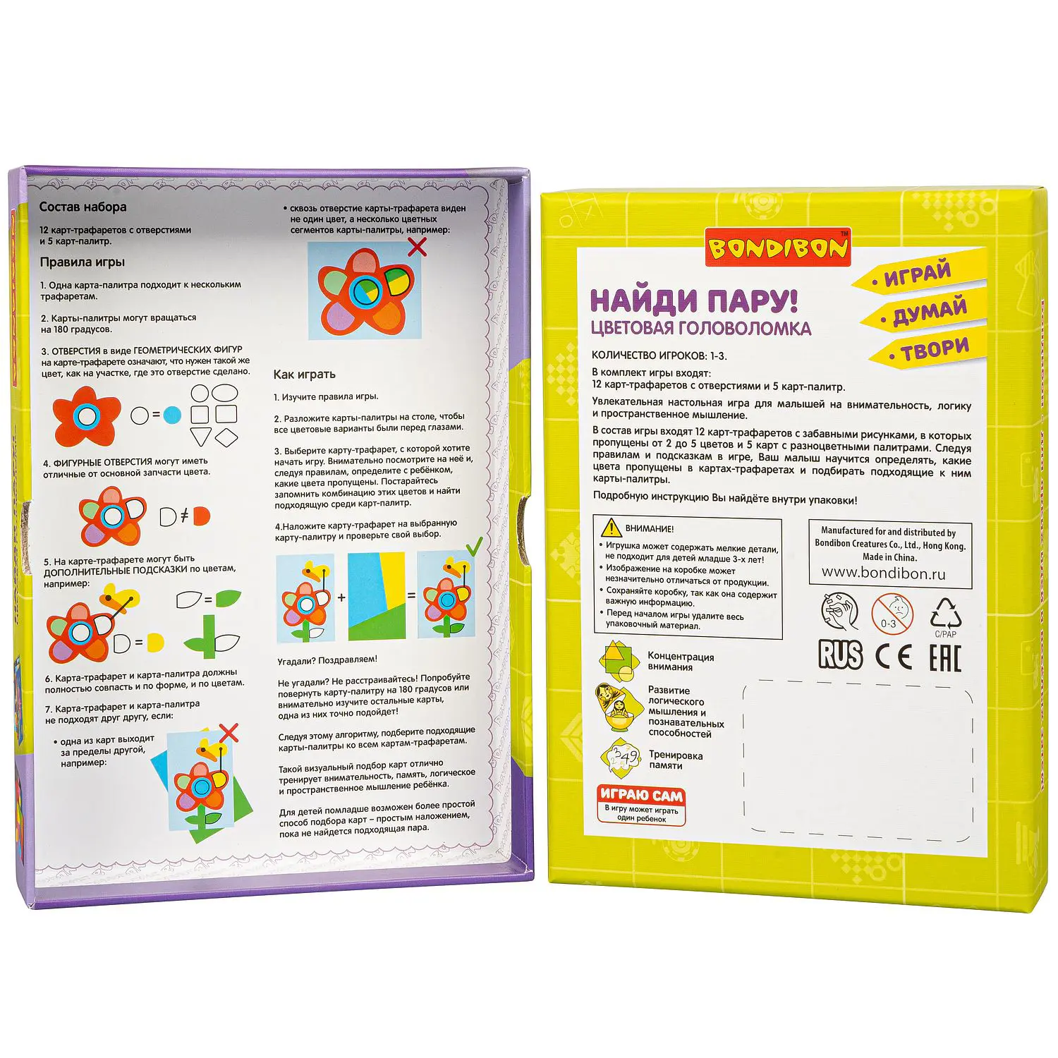 Настольная игра "НАЙДИ ПАРУ!" серии "Играй Думай Твори" от Bondibon – это увлекательная цветовая головоломка для малышей на внимательность, логику и пространственное мышление.