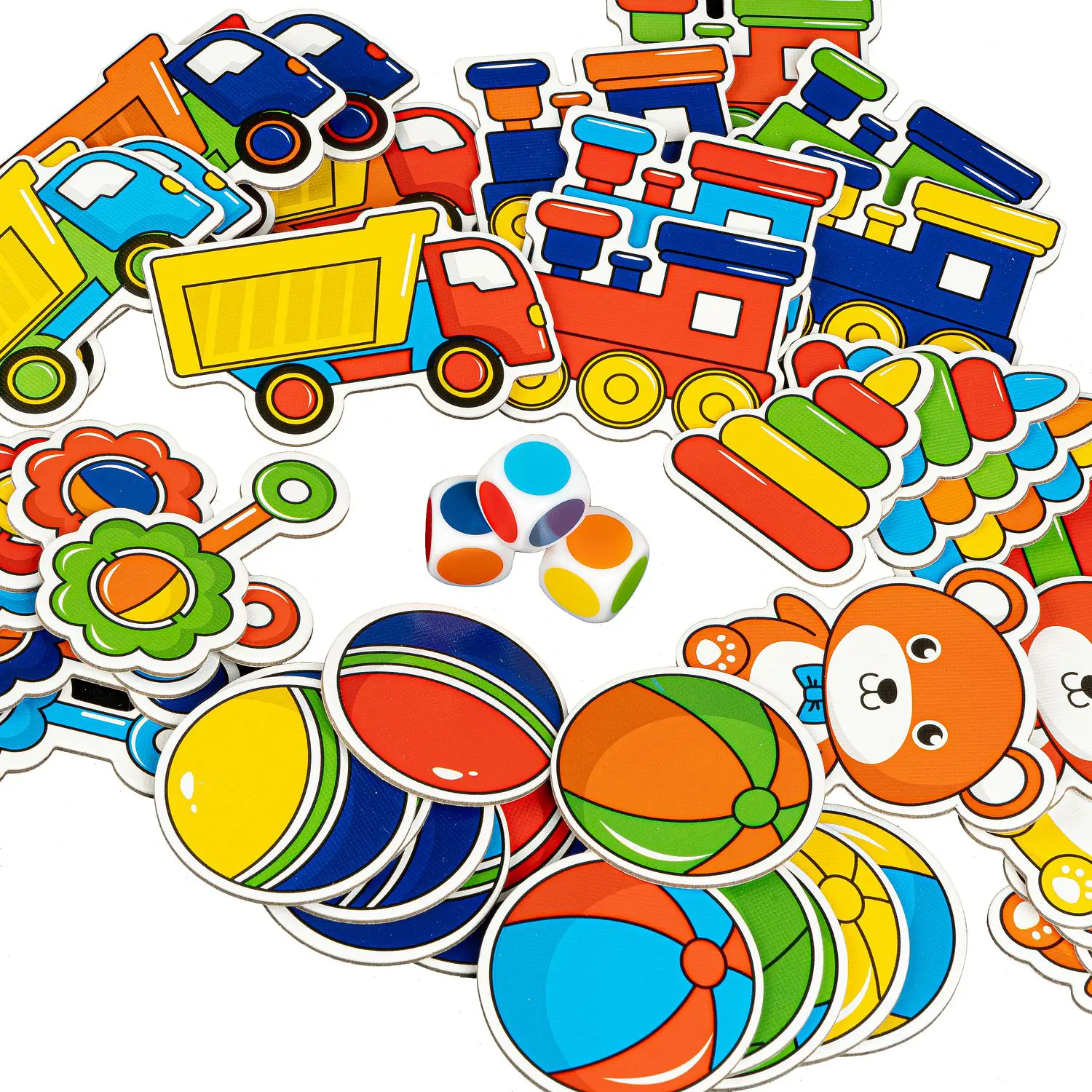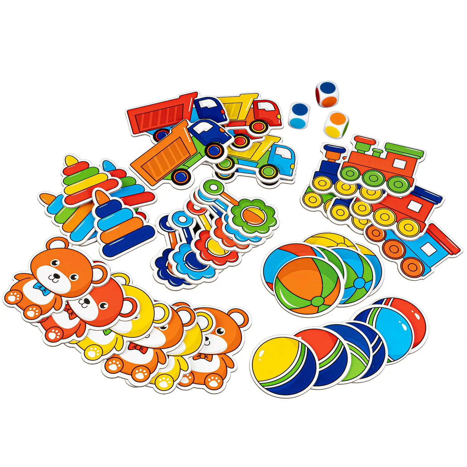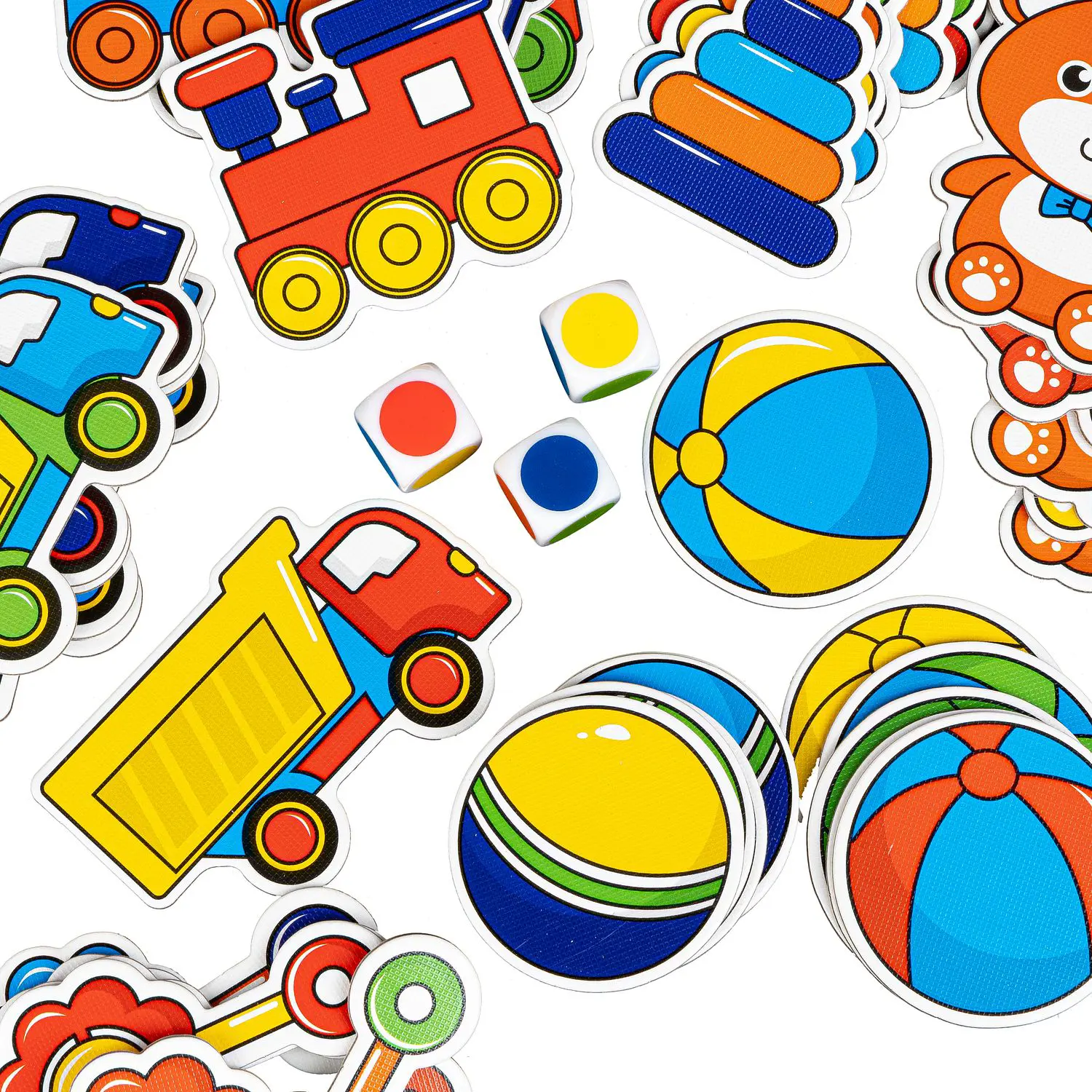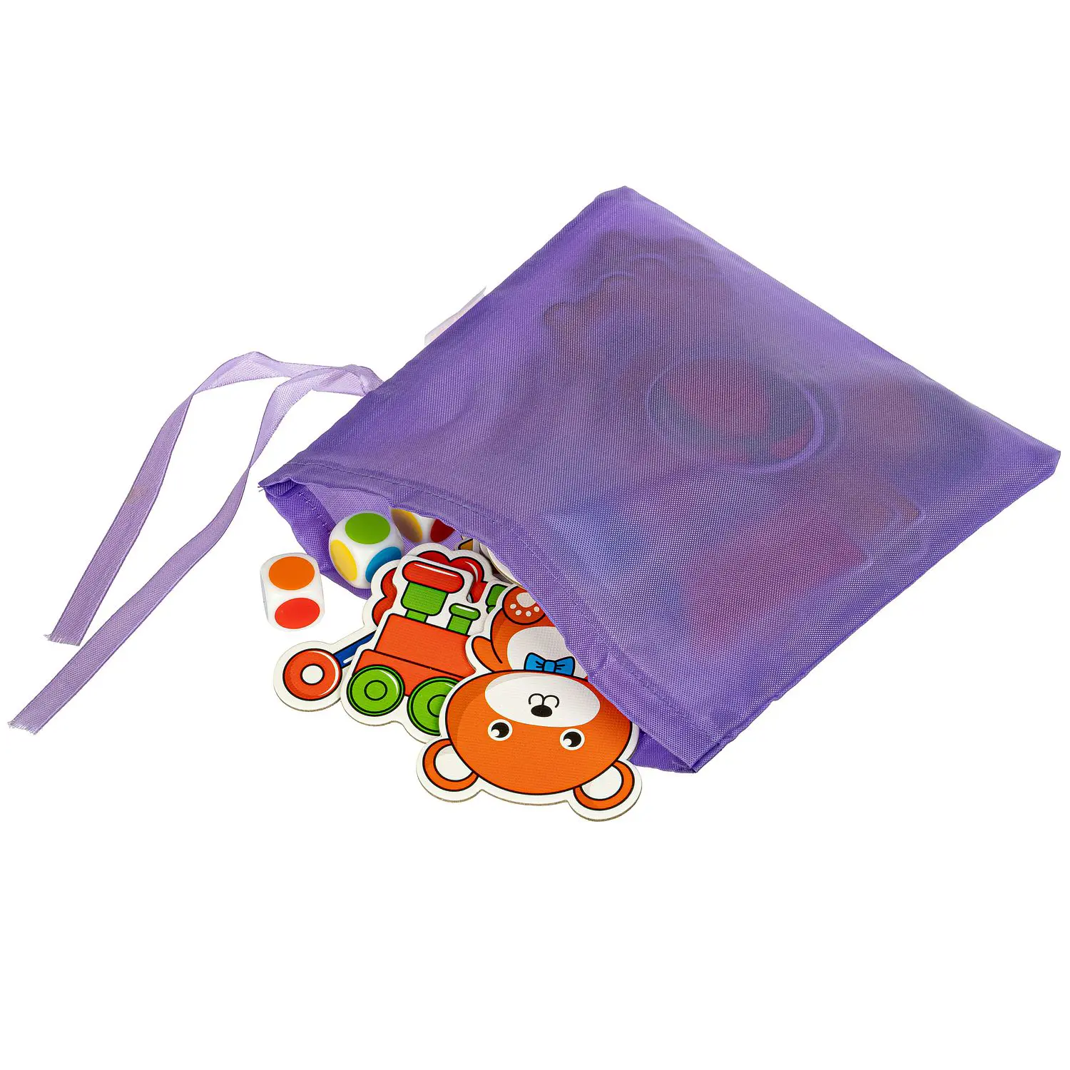 Состав набора: 42 игровые карточки, 3 кубика, тканевый мешочек, с которым игру удобно взять с собой в гости или в путешествие.